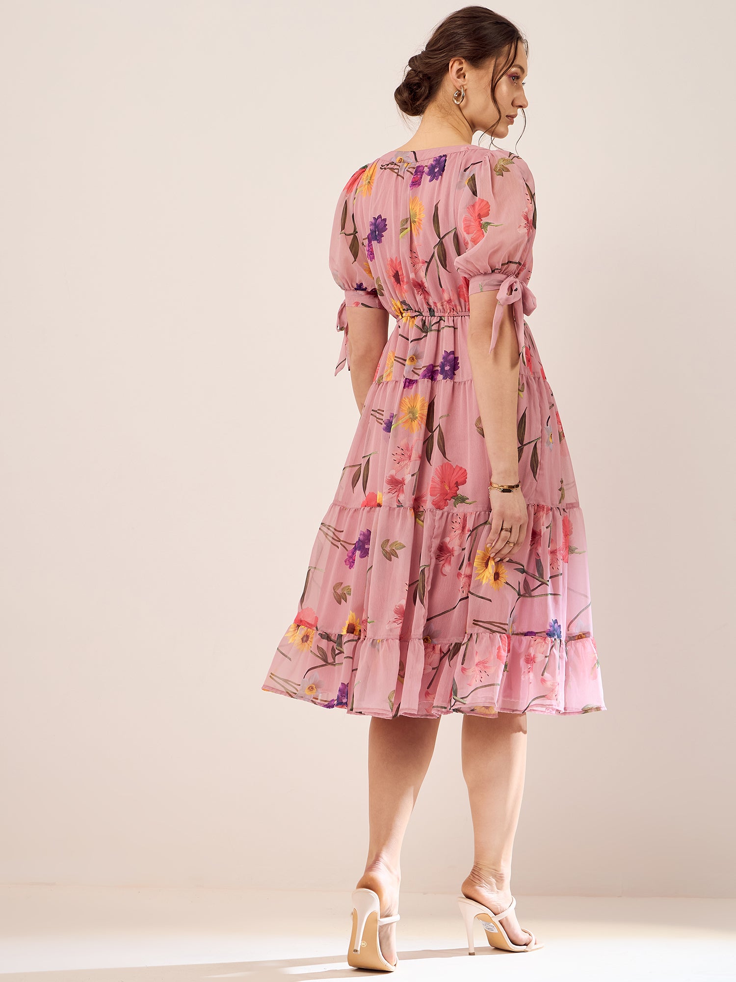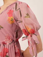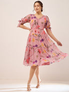 - Pink floral printed fit & flare dress