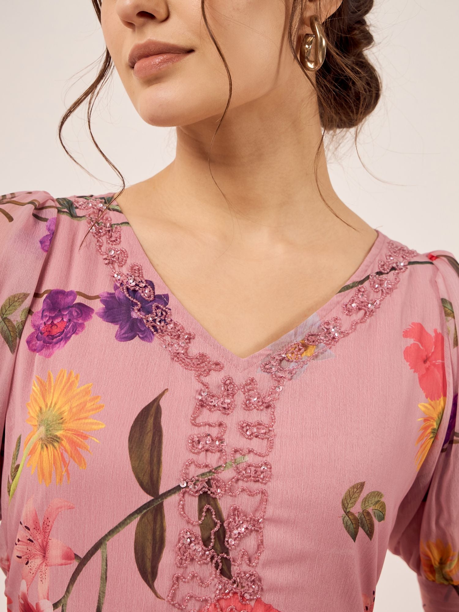 - Ruffled & beads detail