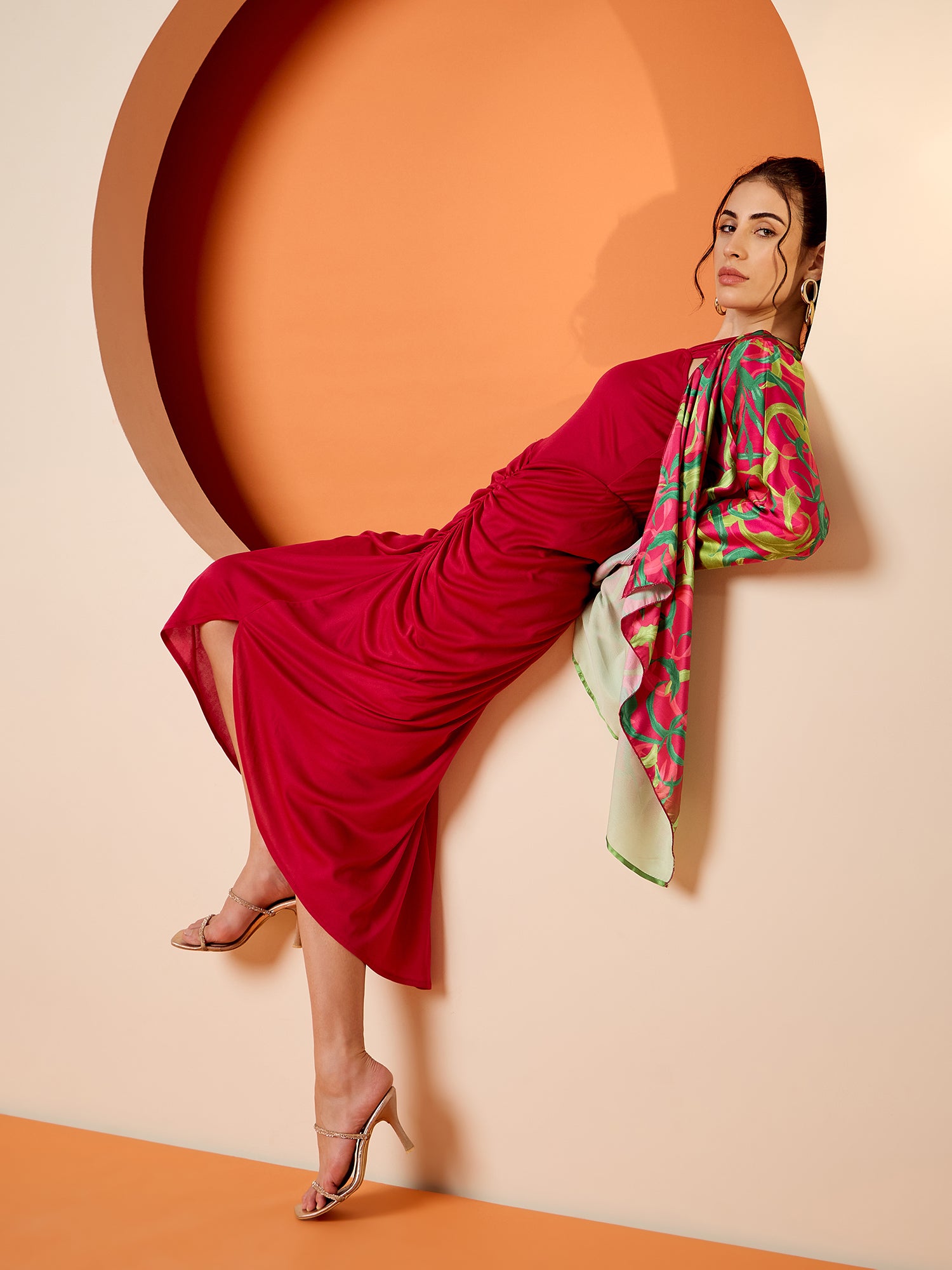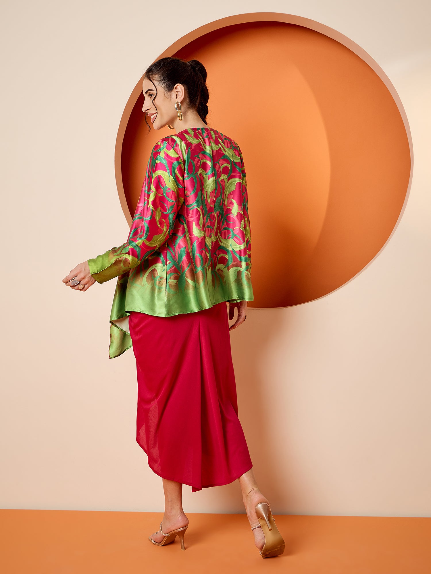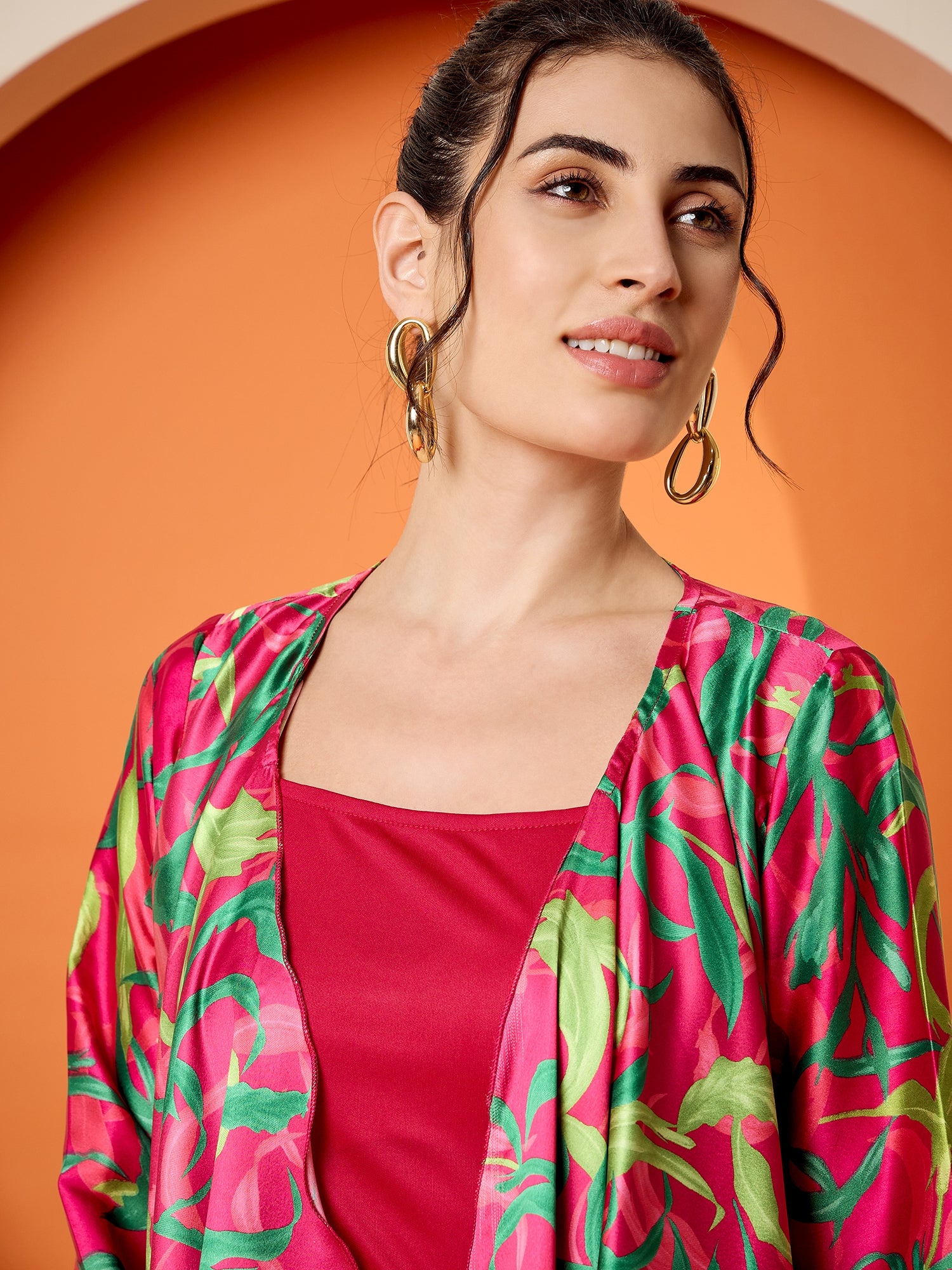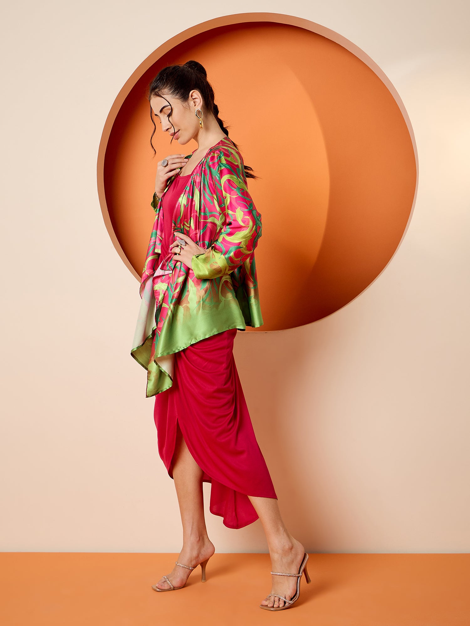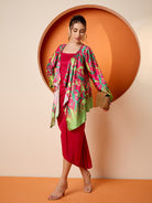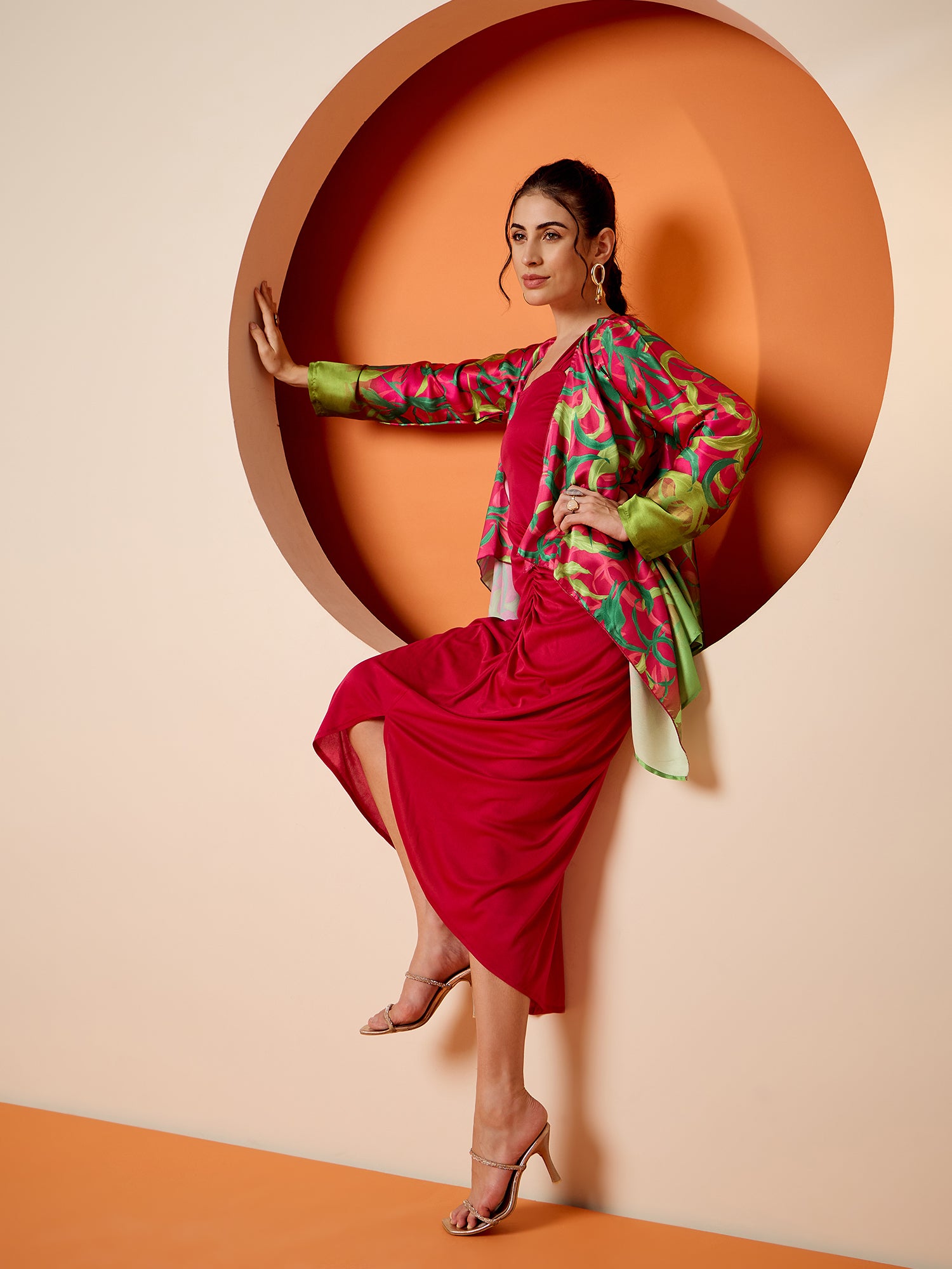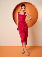 Antheaa Pink Square Neck A-Line Midi Dress With Jacket