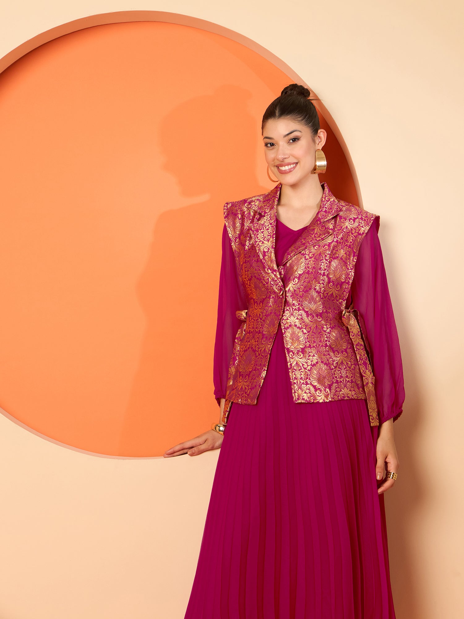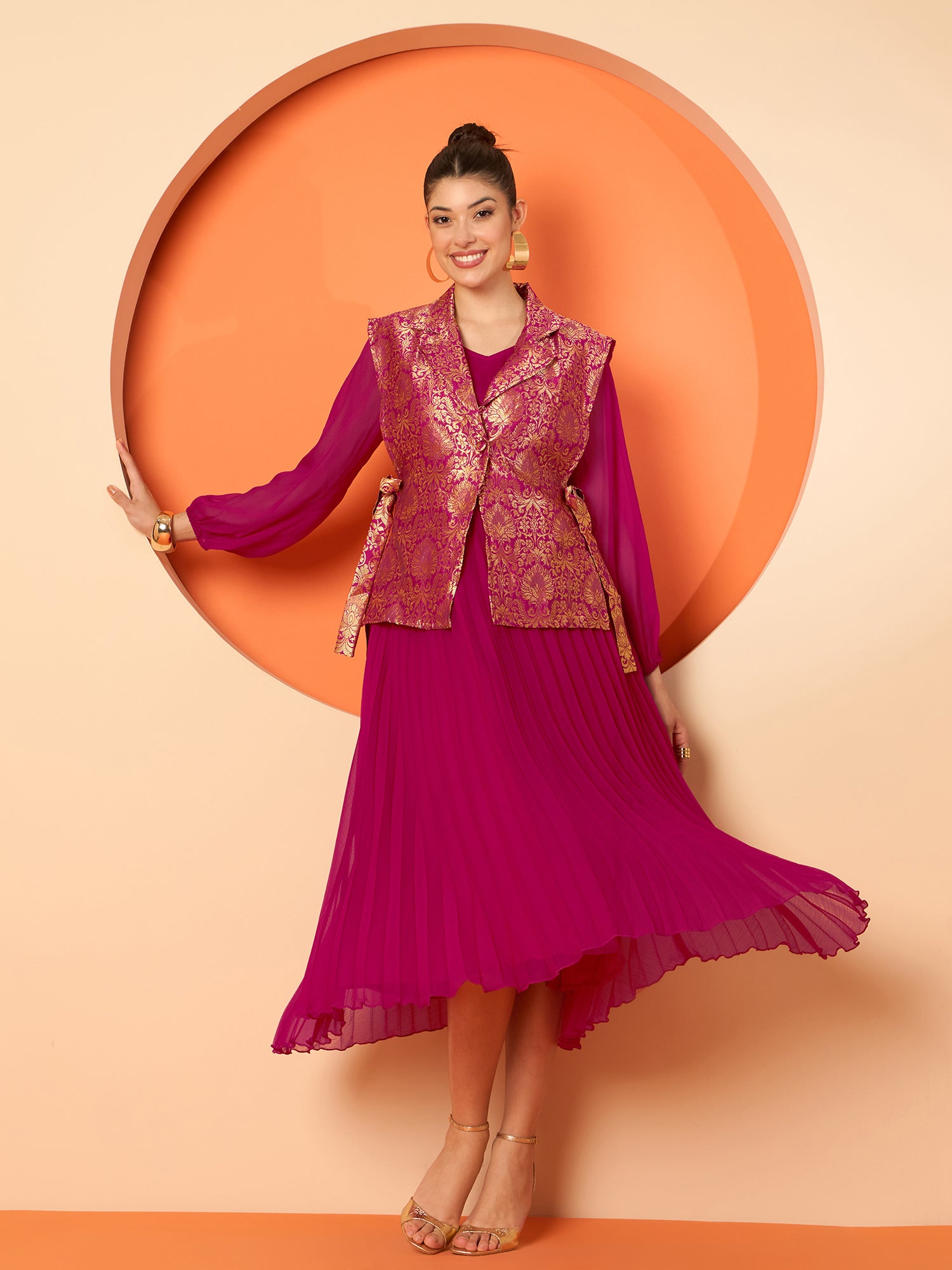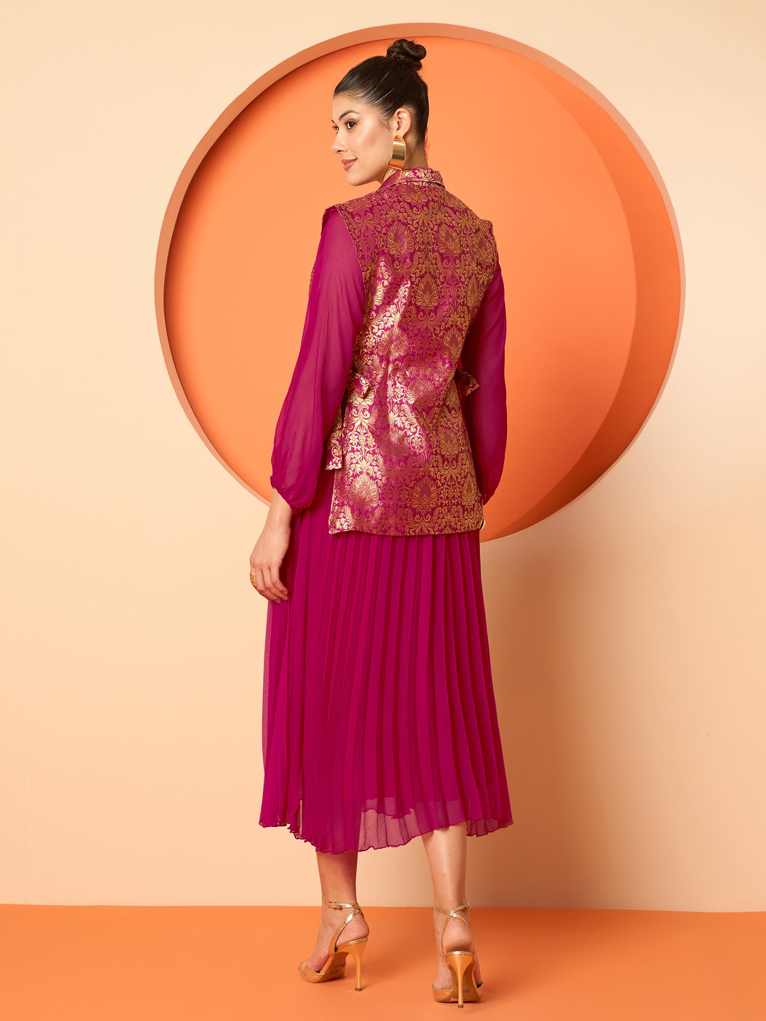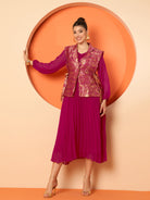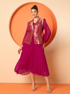 Antheaa Pleated Midi Dresses With Brocade Blazer