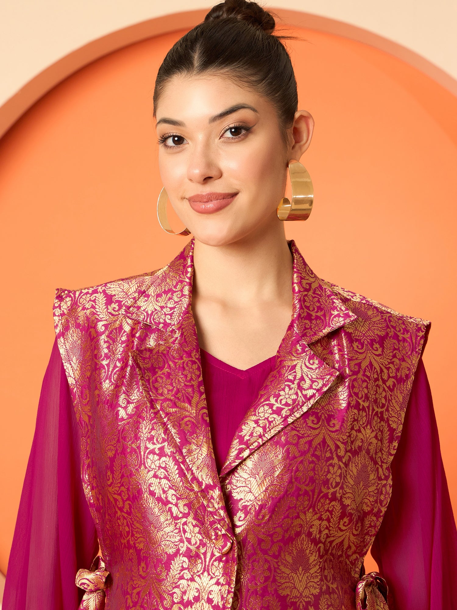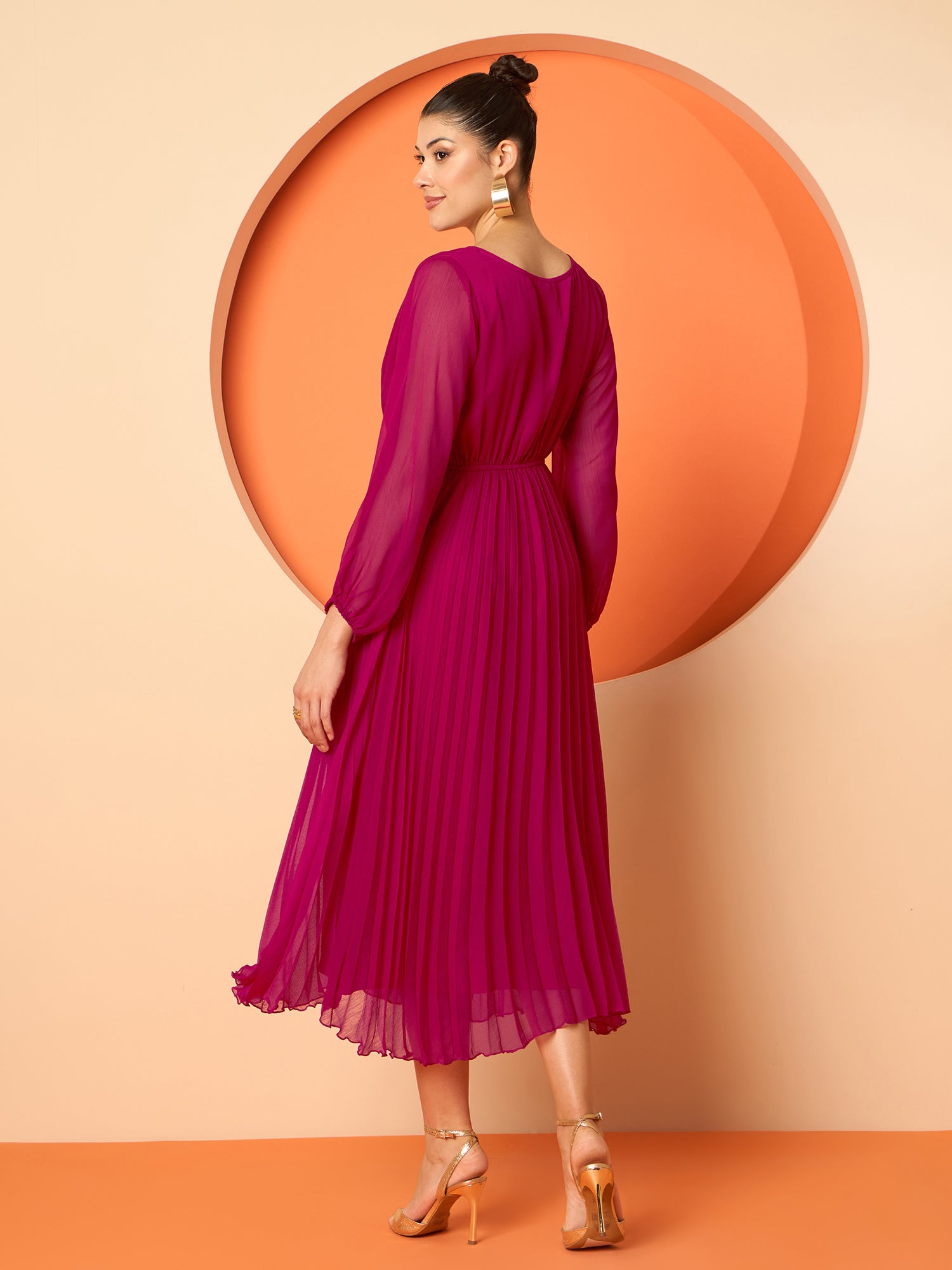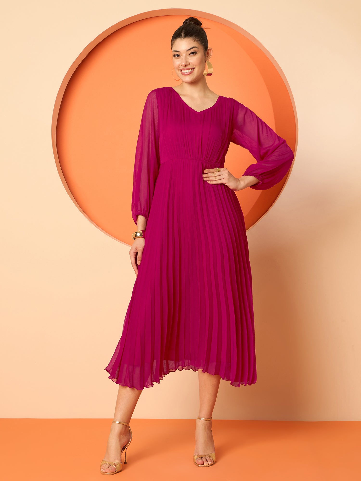 Antheaa Pleated Midi Dresses With Brocade Blazer