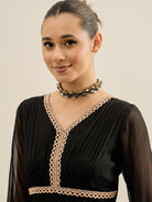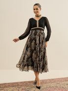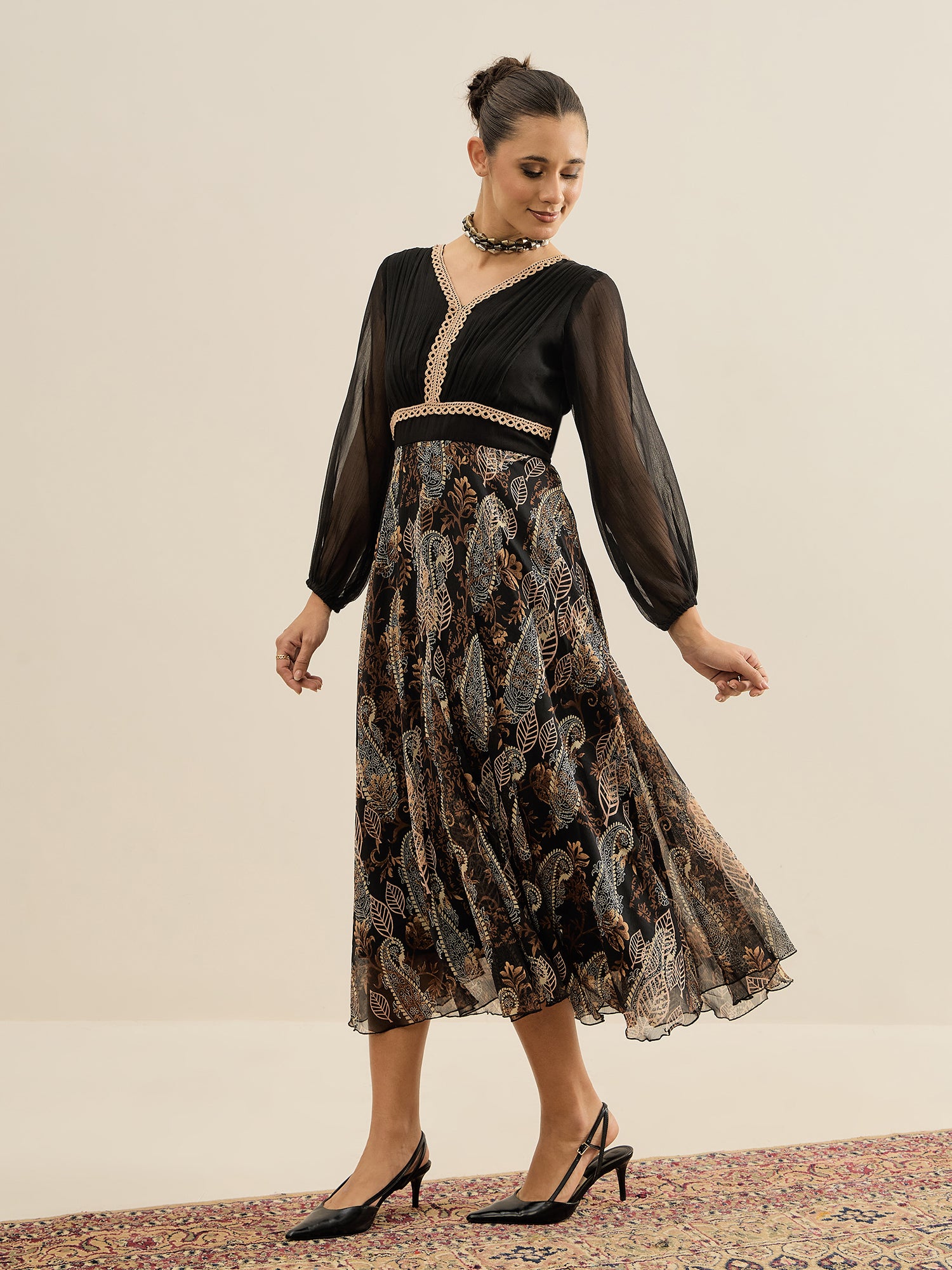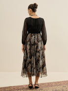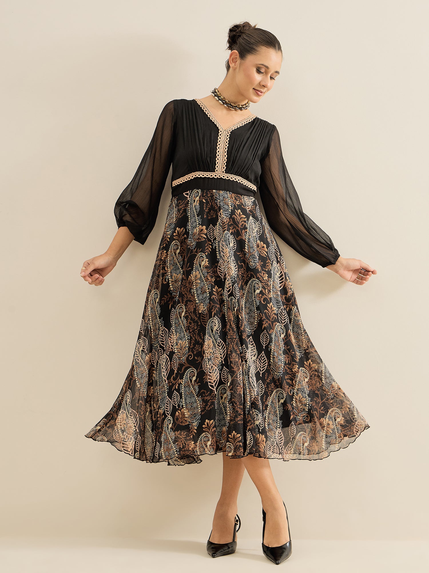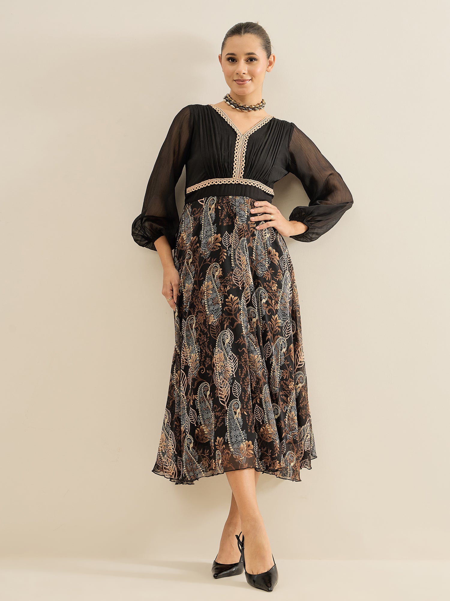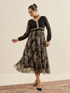 - Black and black paisley print a-line dress