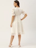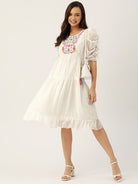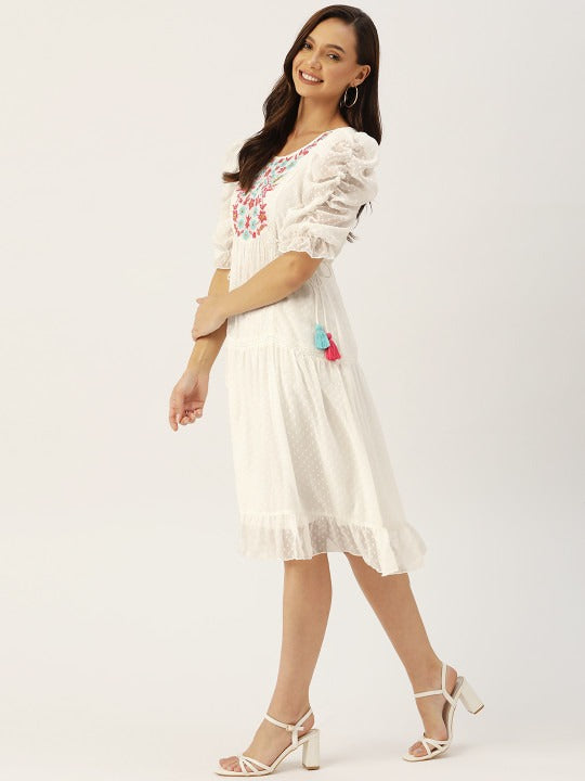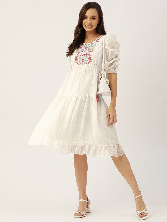 Antheaa White Floral Chiffon Embroidered Laced A-Line Dress