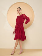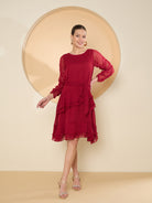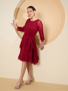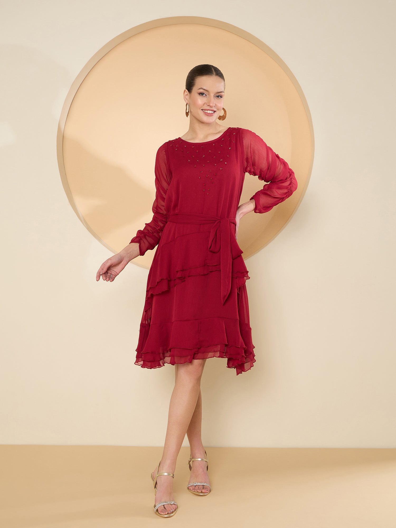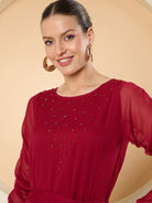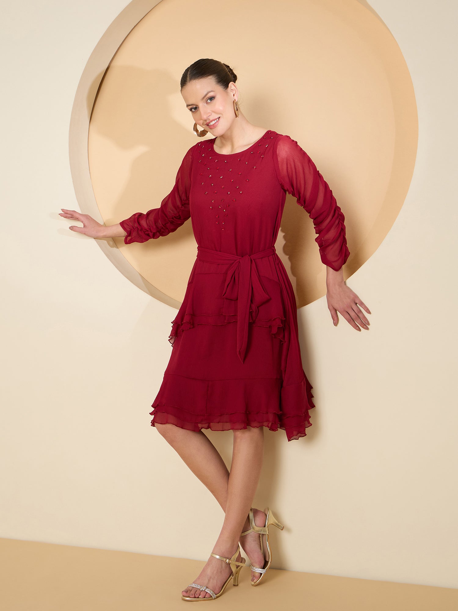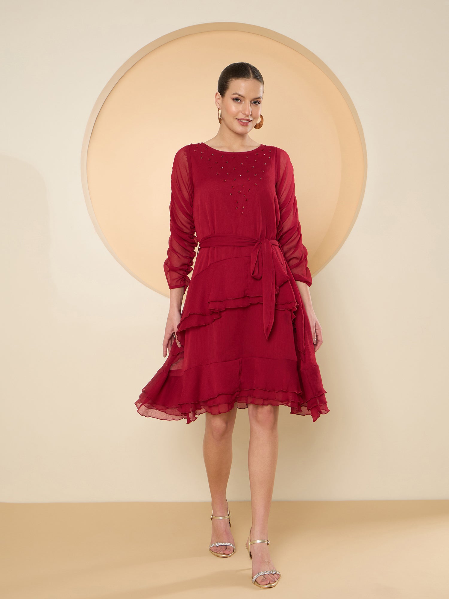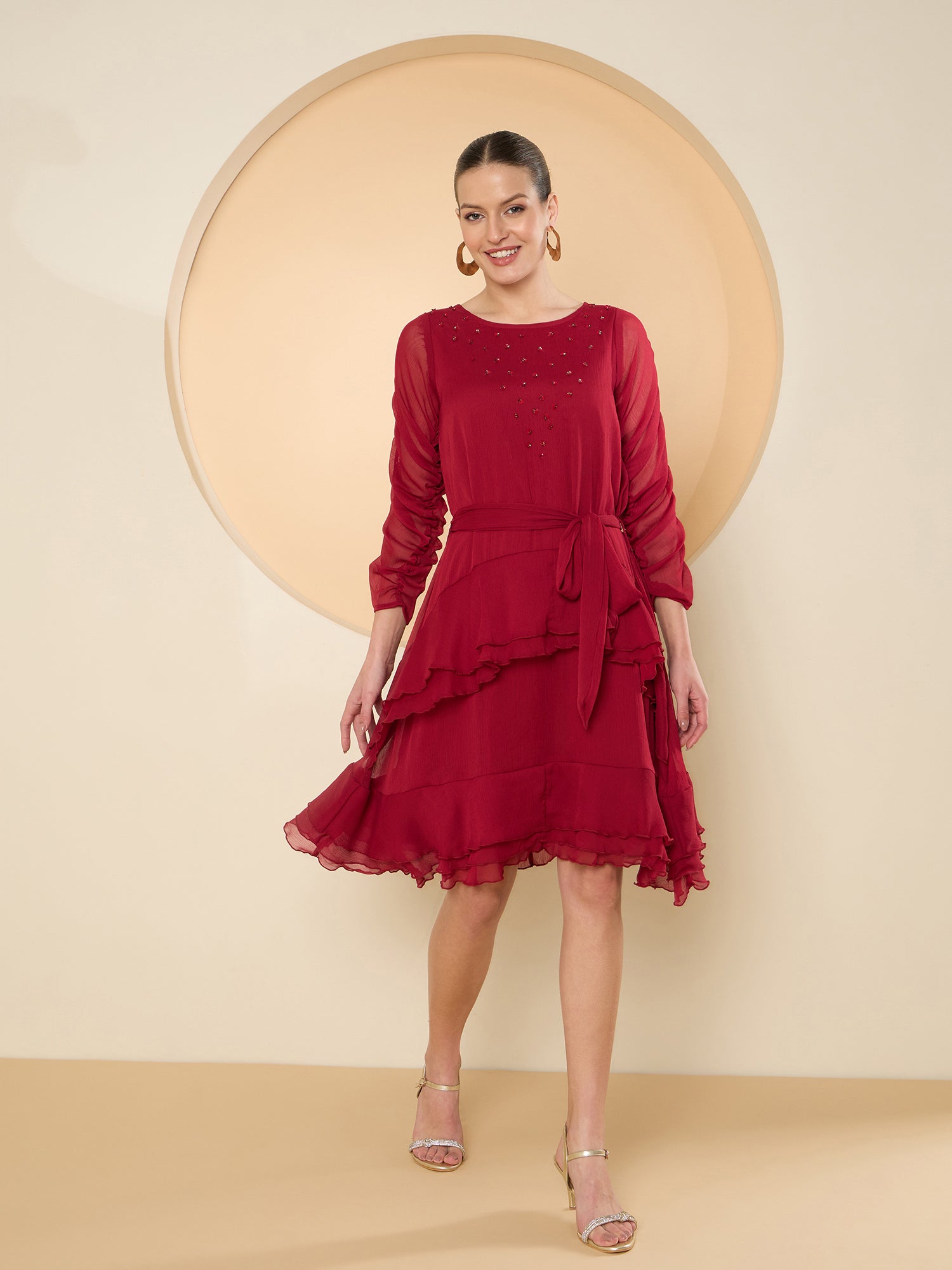 Antheaa Women Chiffon Fit & Flare Embellished Dress