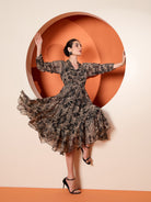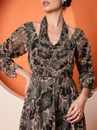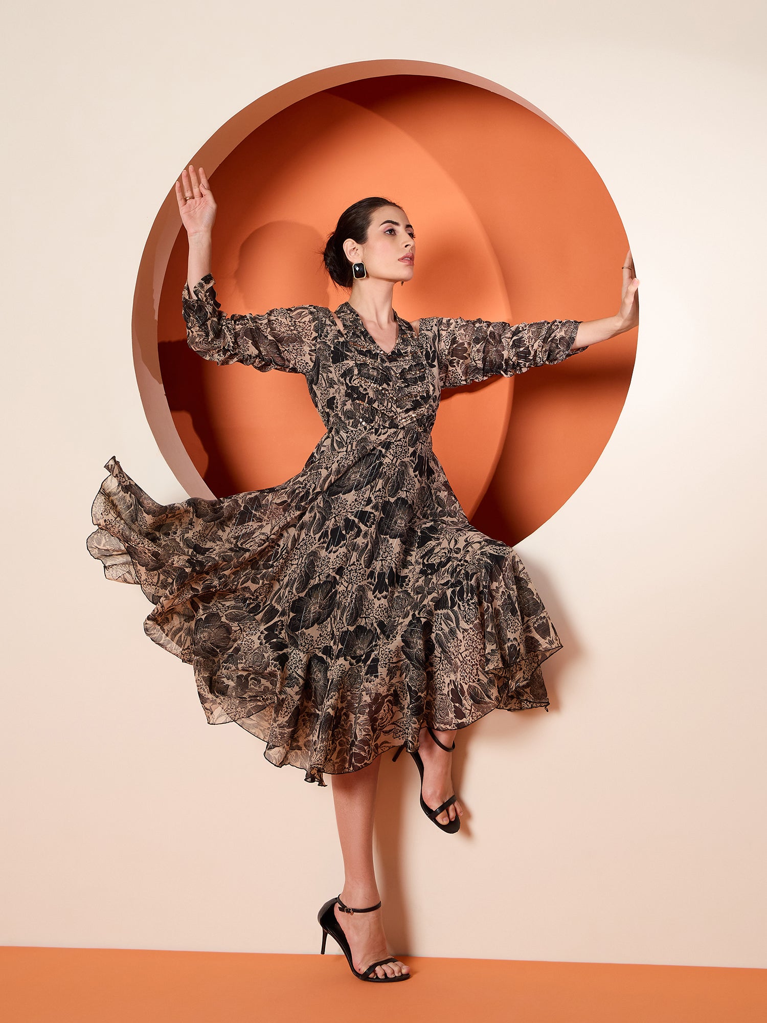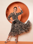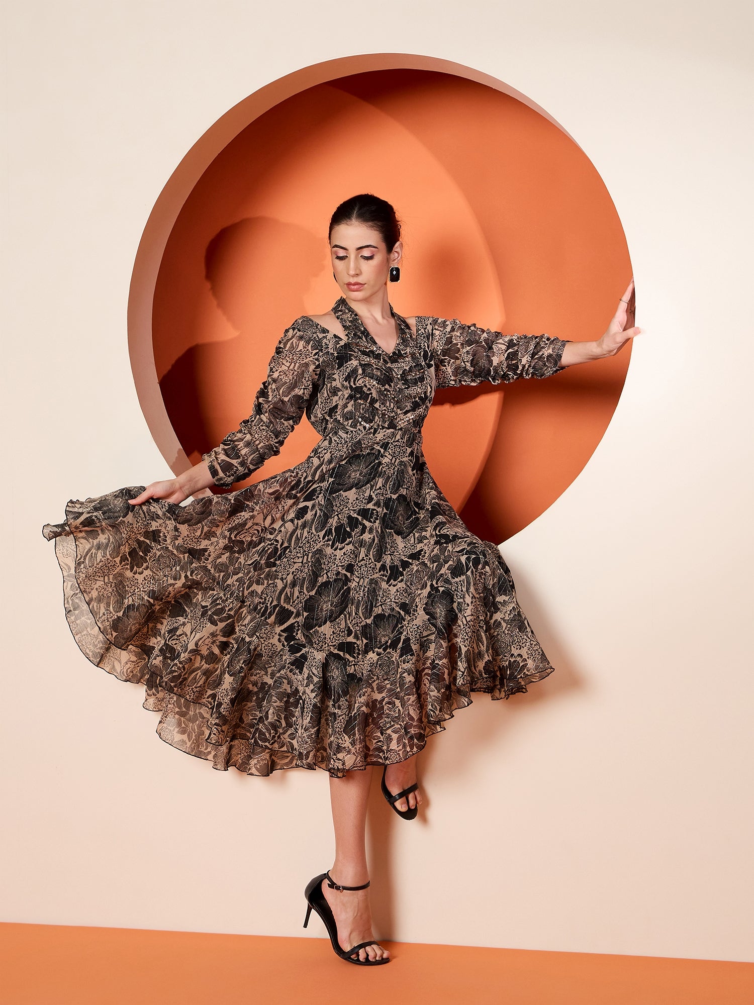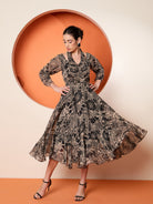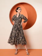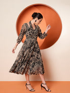 Antheaa Women Embellished Floral Printed Puff Sleeve Fit & Flare Midi Dress