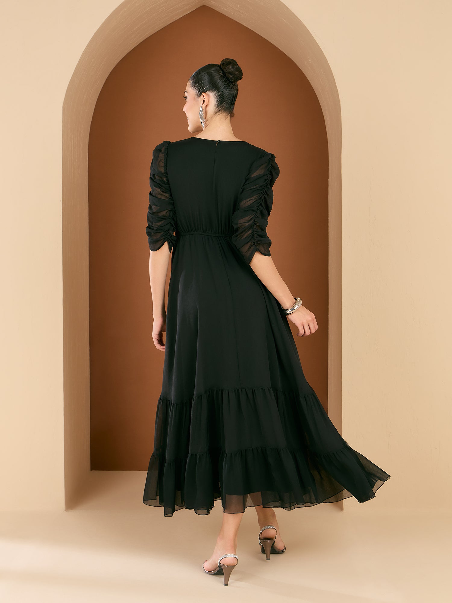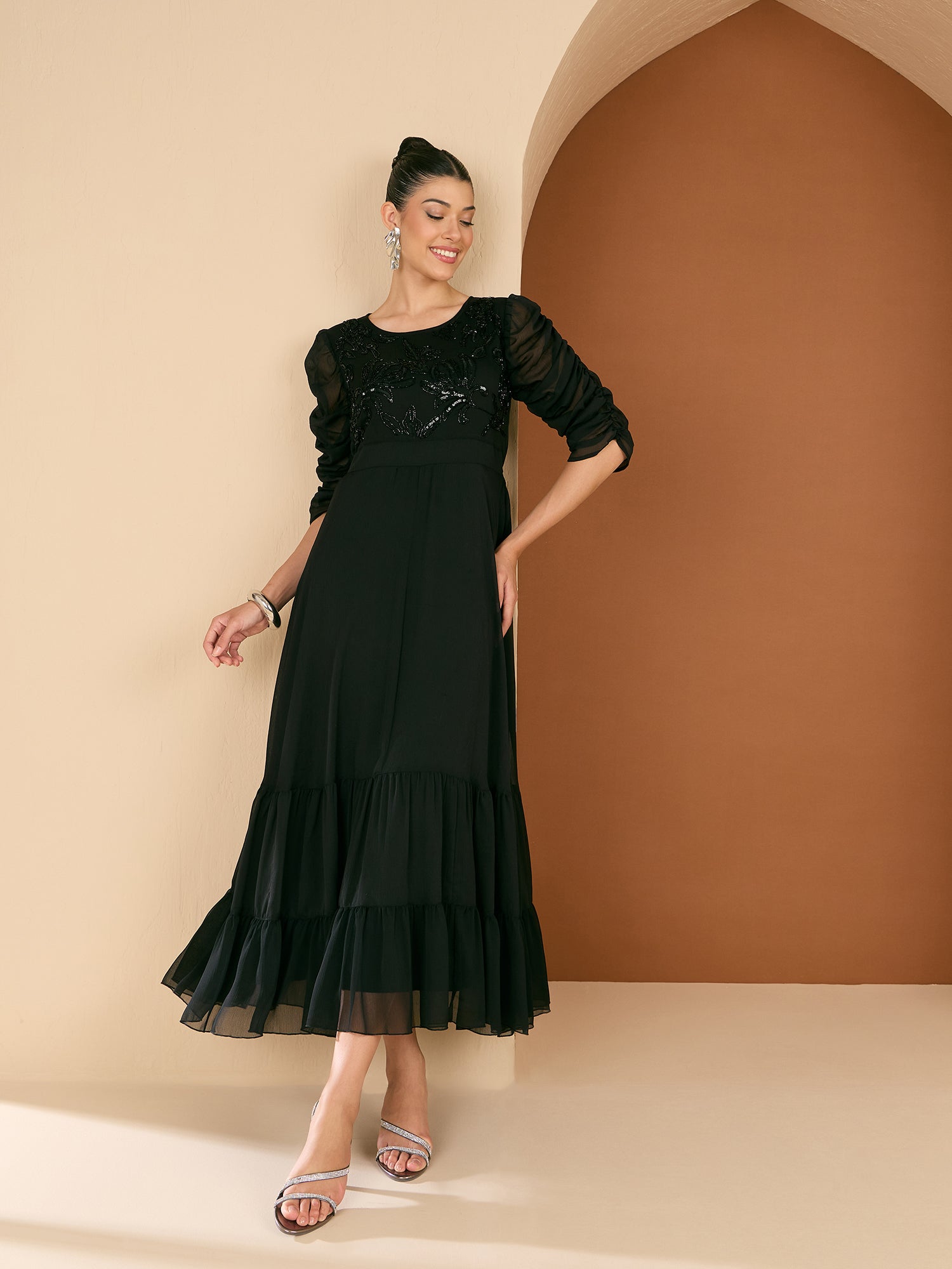 - Black solid maxi dress