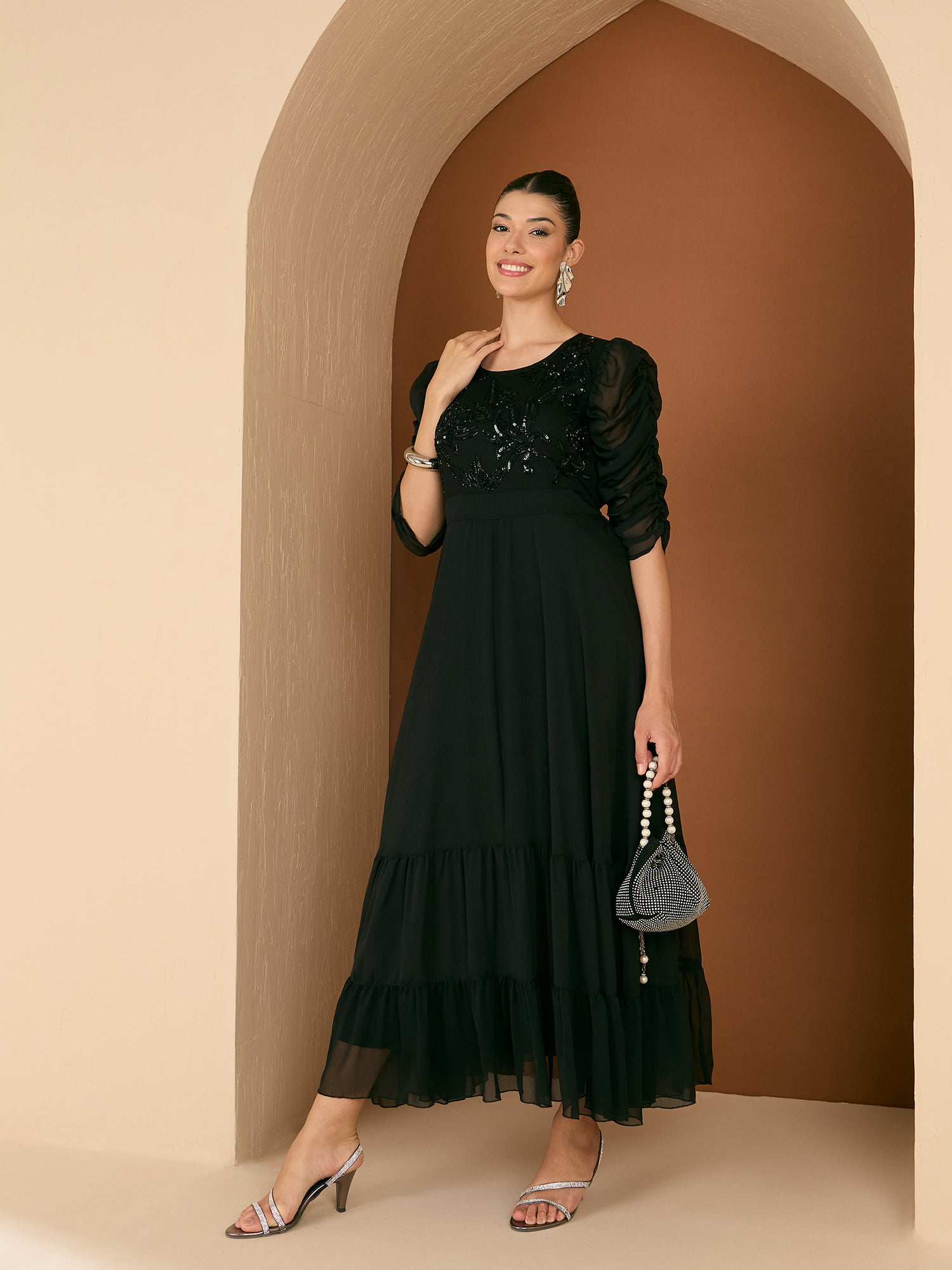 Antheaa Women Embellished Maxi Party Wear Dress