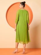 Antheaa Women Embellished V-Neck A-Line Midi Dress With Shrug