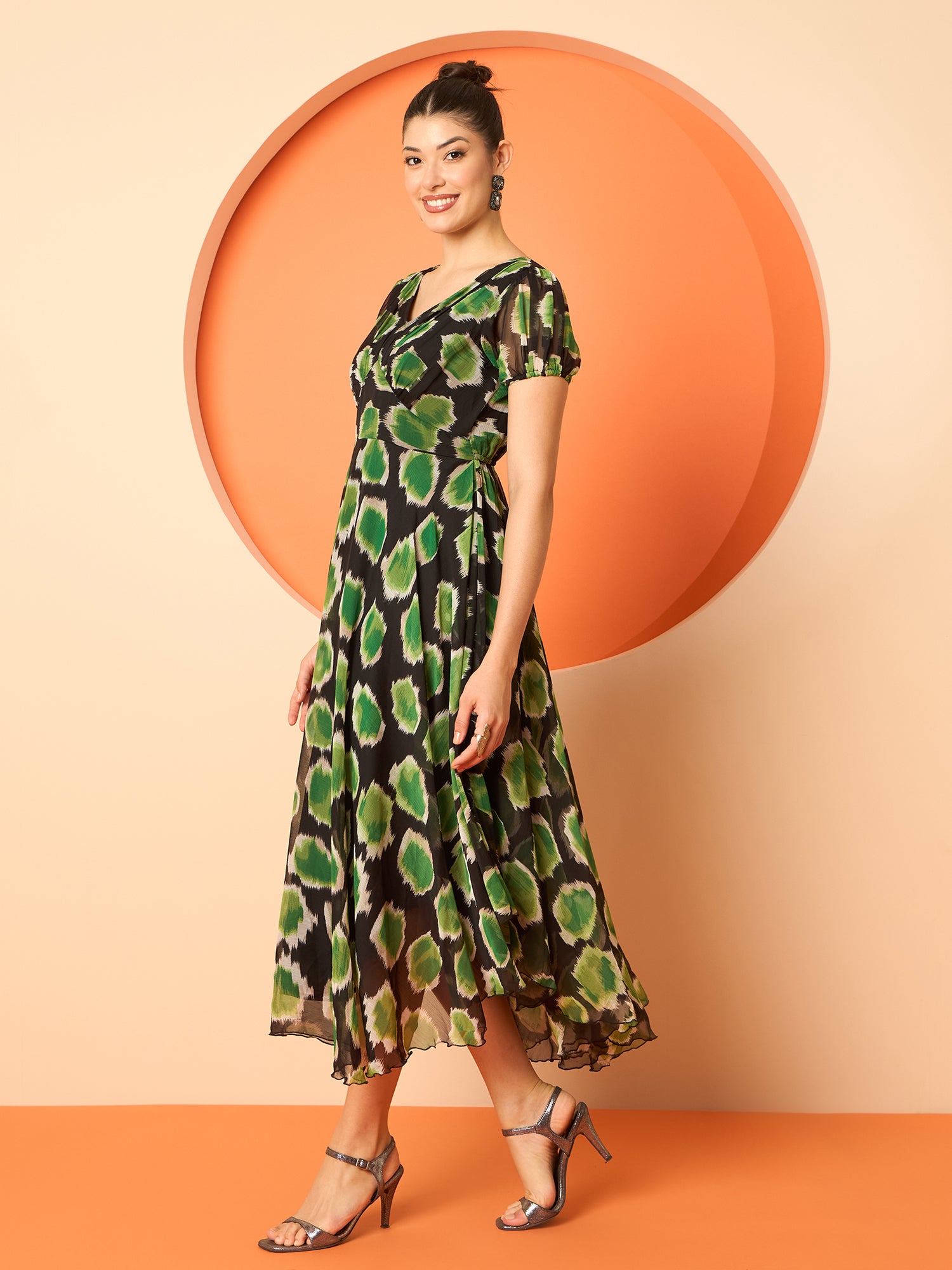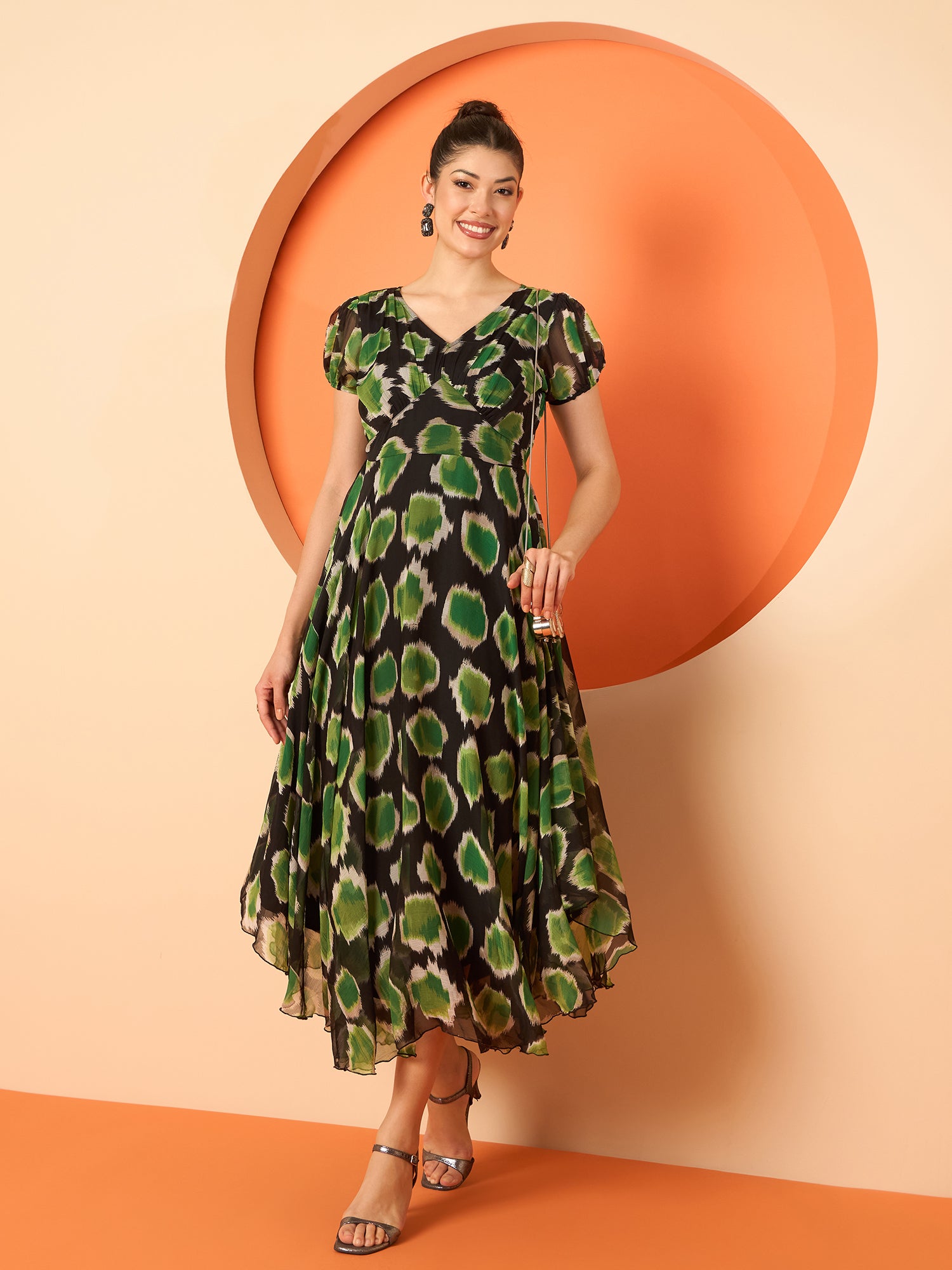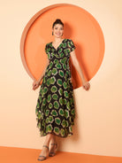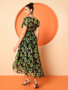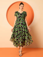 Antheaa Women Ethnic Motifs Printed Layered Chiffon Fit & Flare Midi Dress