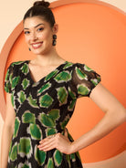 - Black ethnic motifs print fit & flare dress