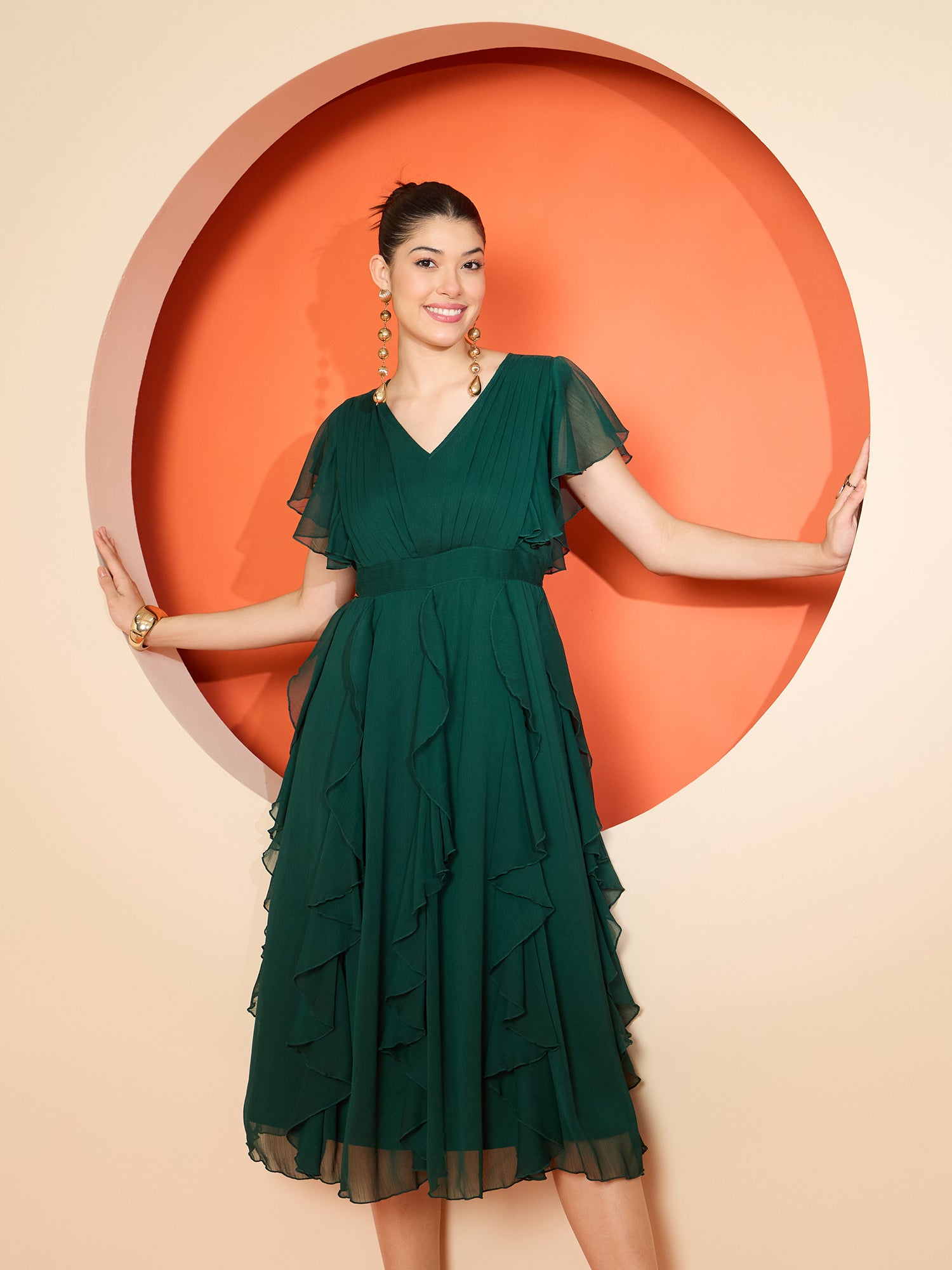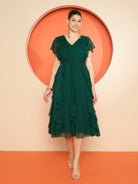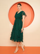 Antheaa Women Flared Sleeves Ruffled Fit & Flare Dress