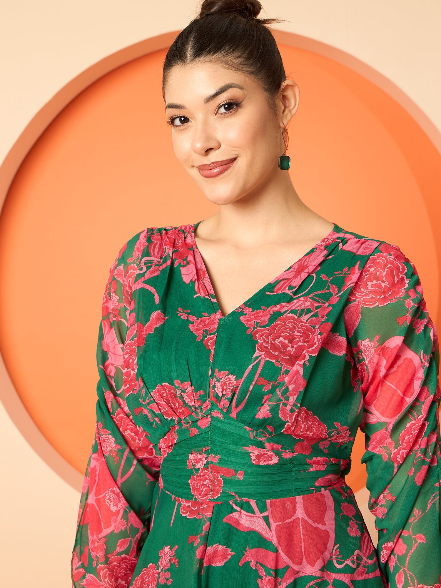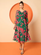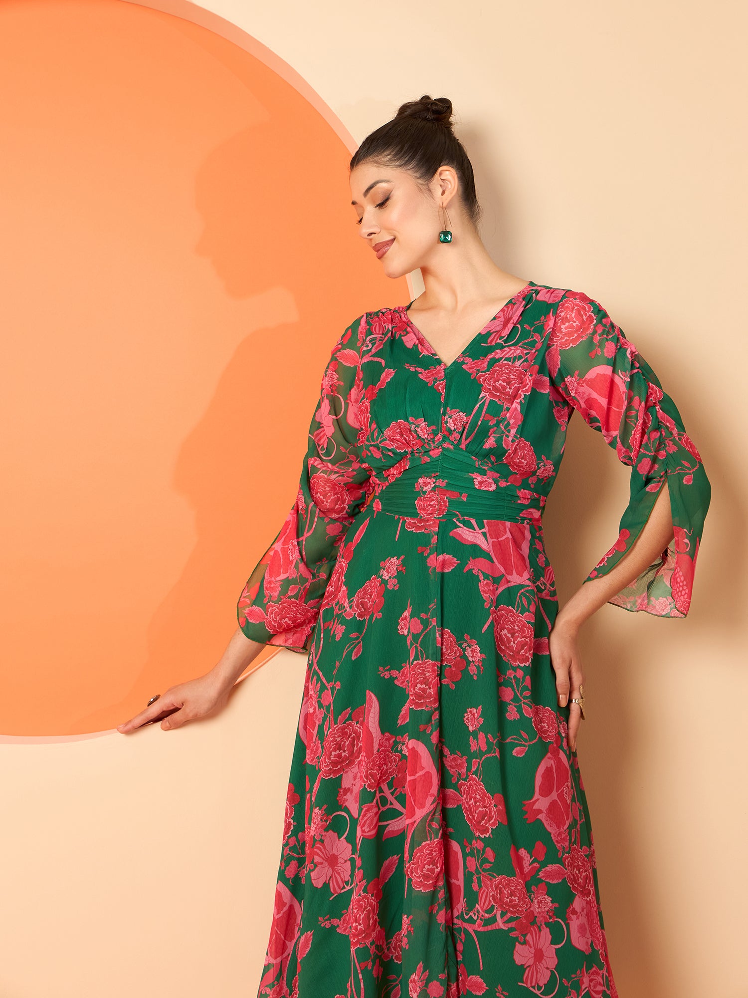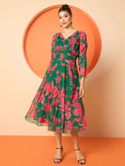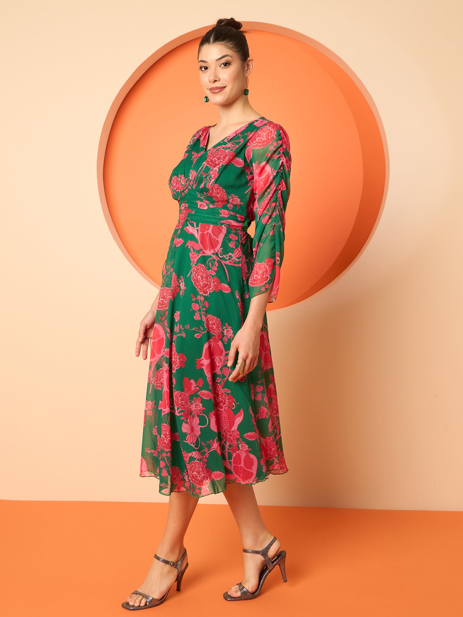 Antheaa Women Floral Print Chiffon Fit & Flare Midi Dress