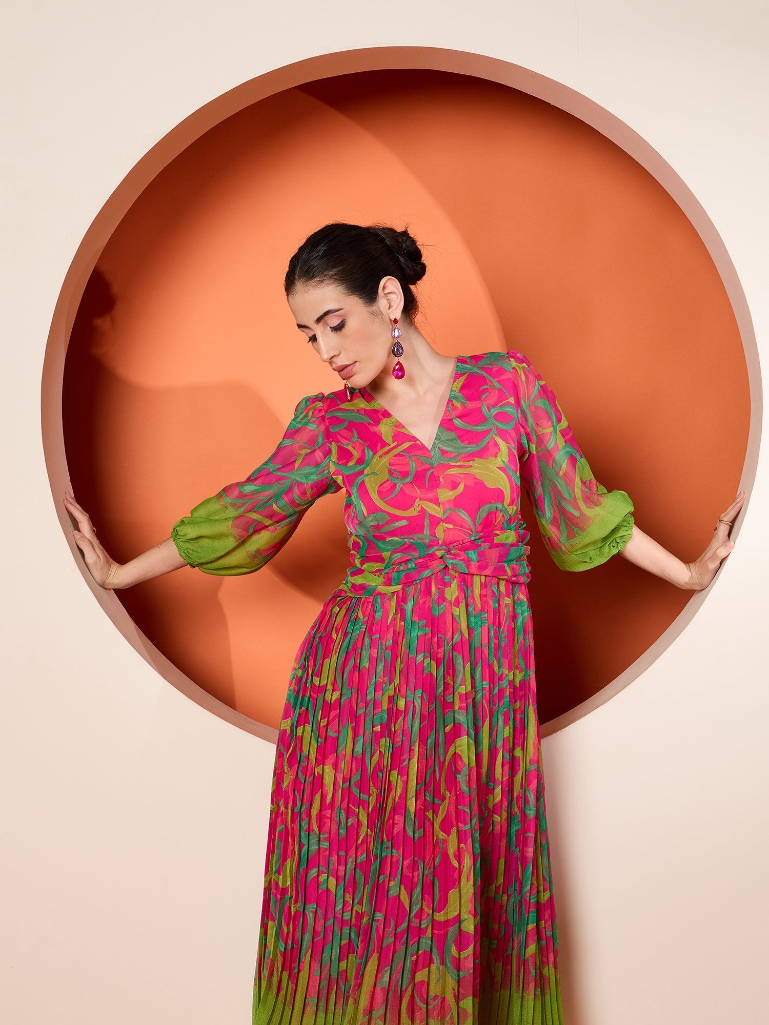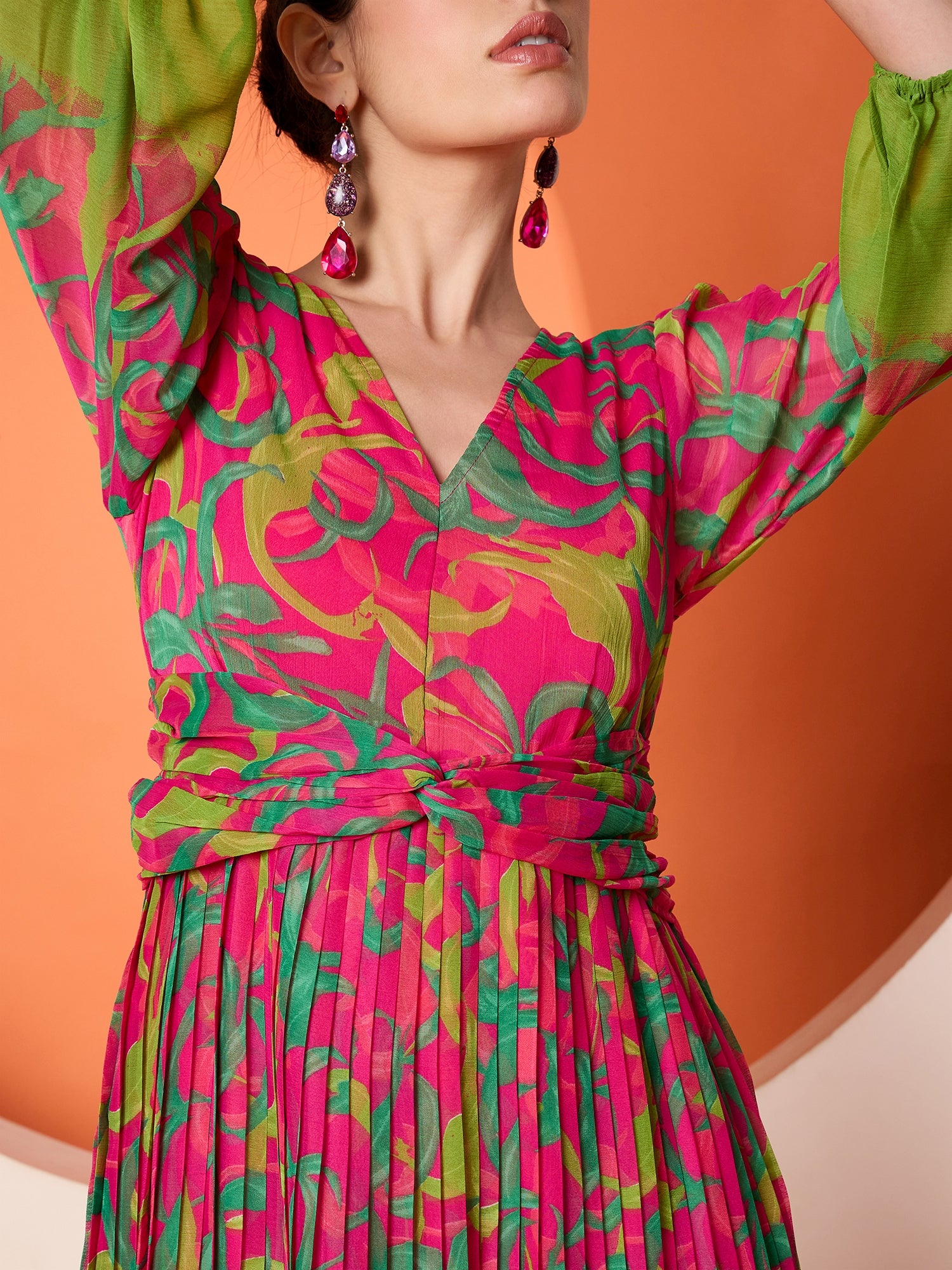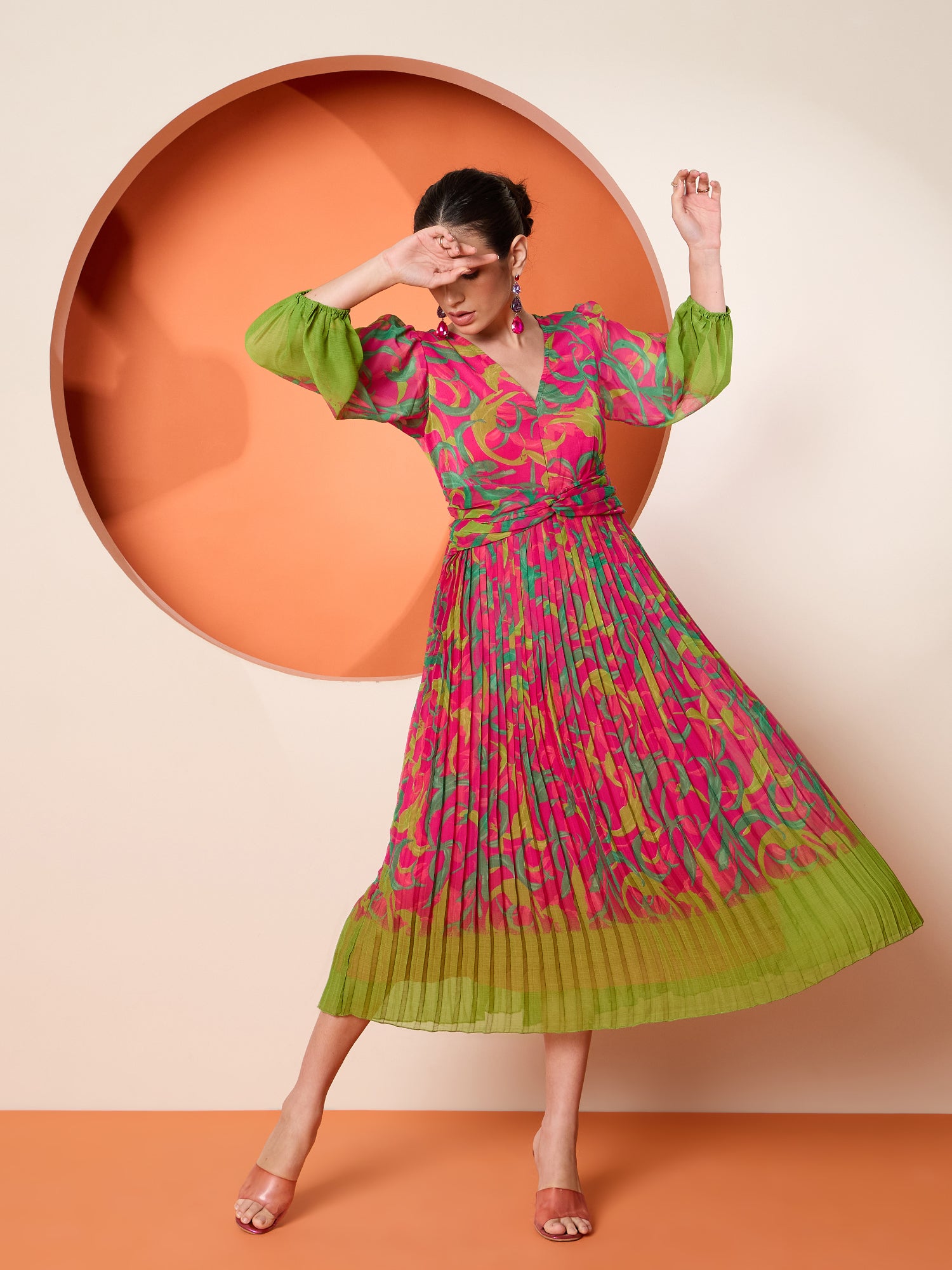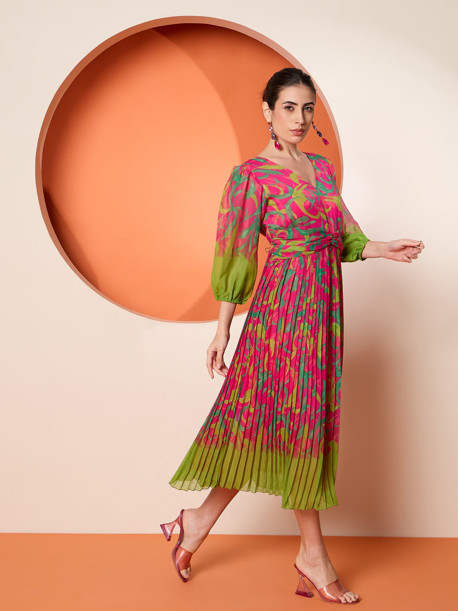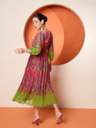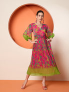 Antheaa Women Floral Printed Fit & Flare Pleated Midi Dress