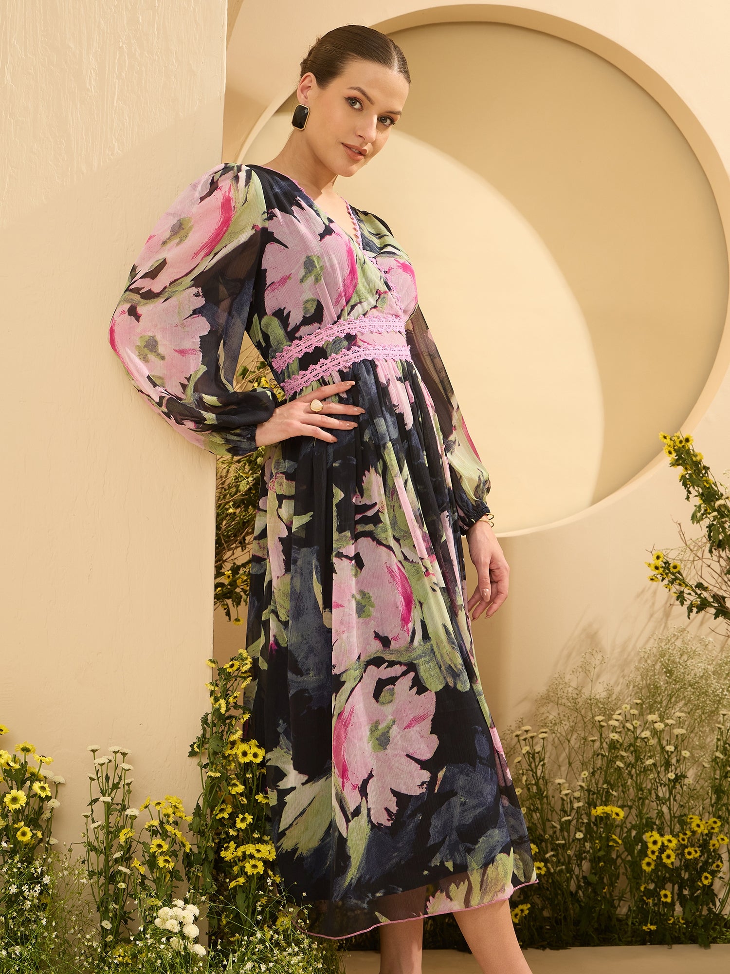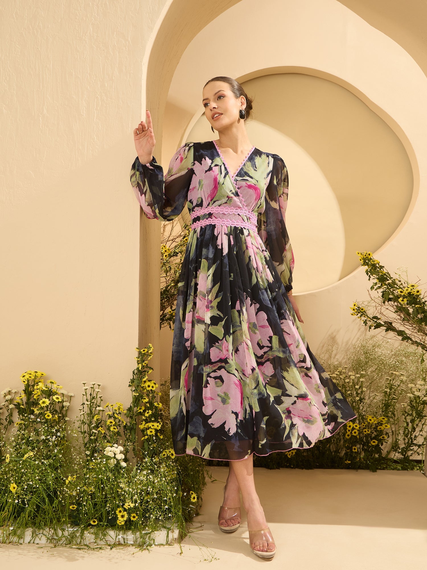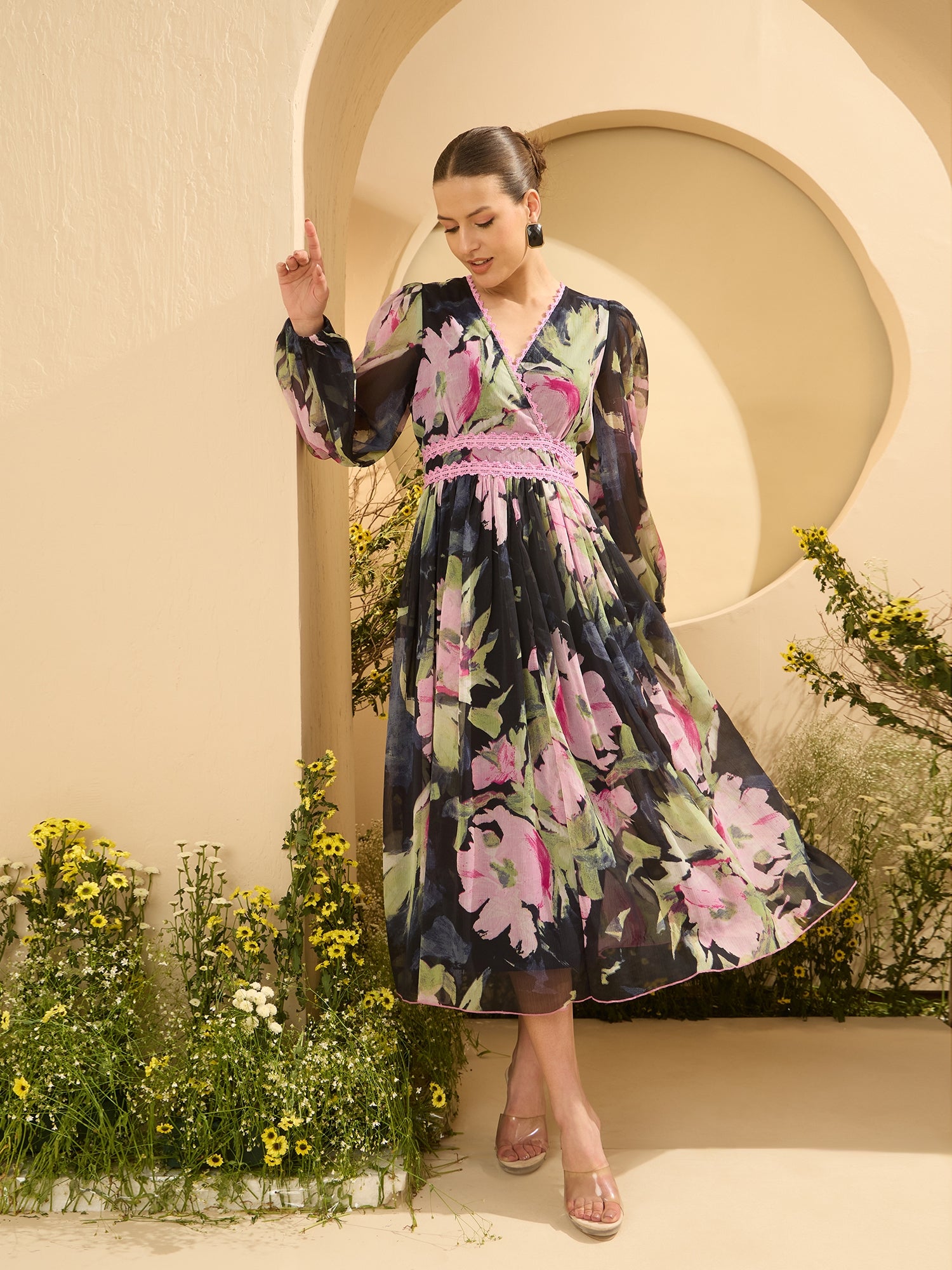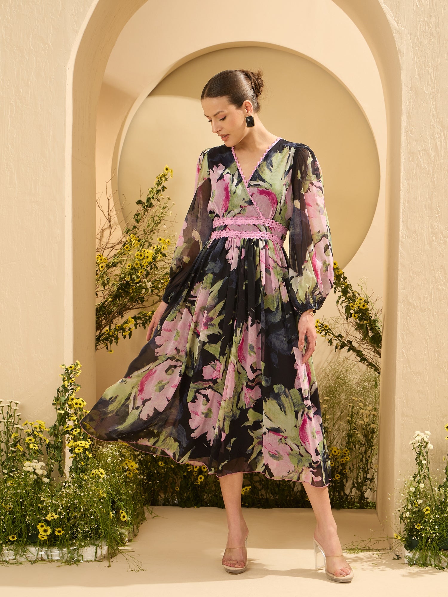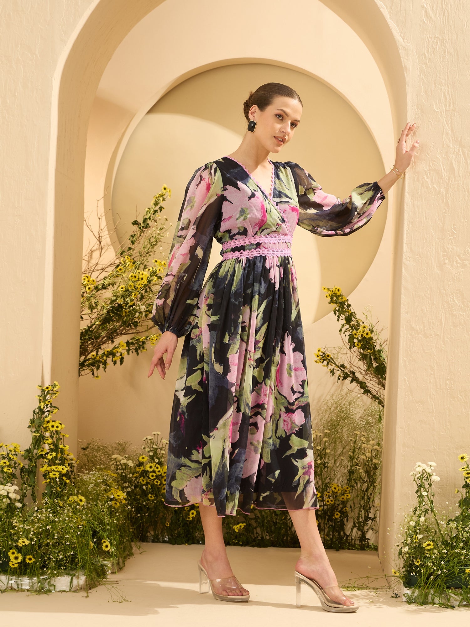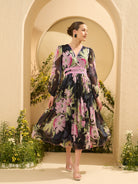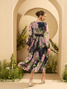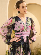 Antheaa Women Floral Printed Wrap Midi Dress
