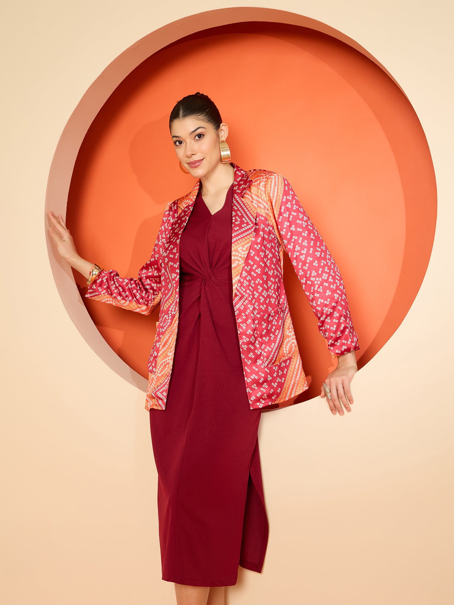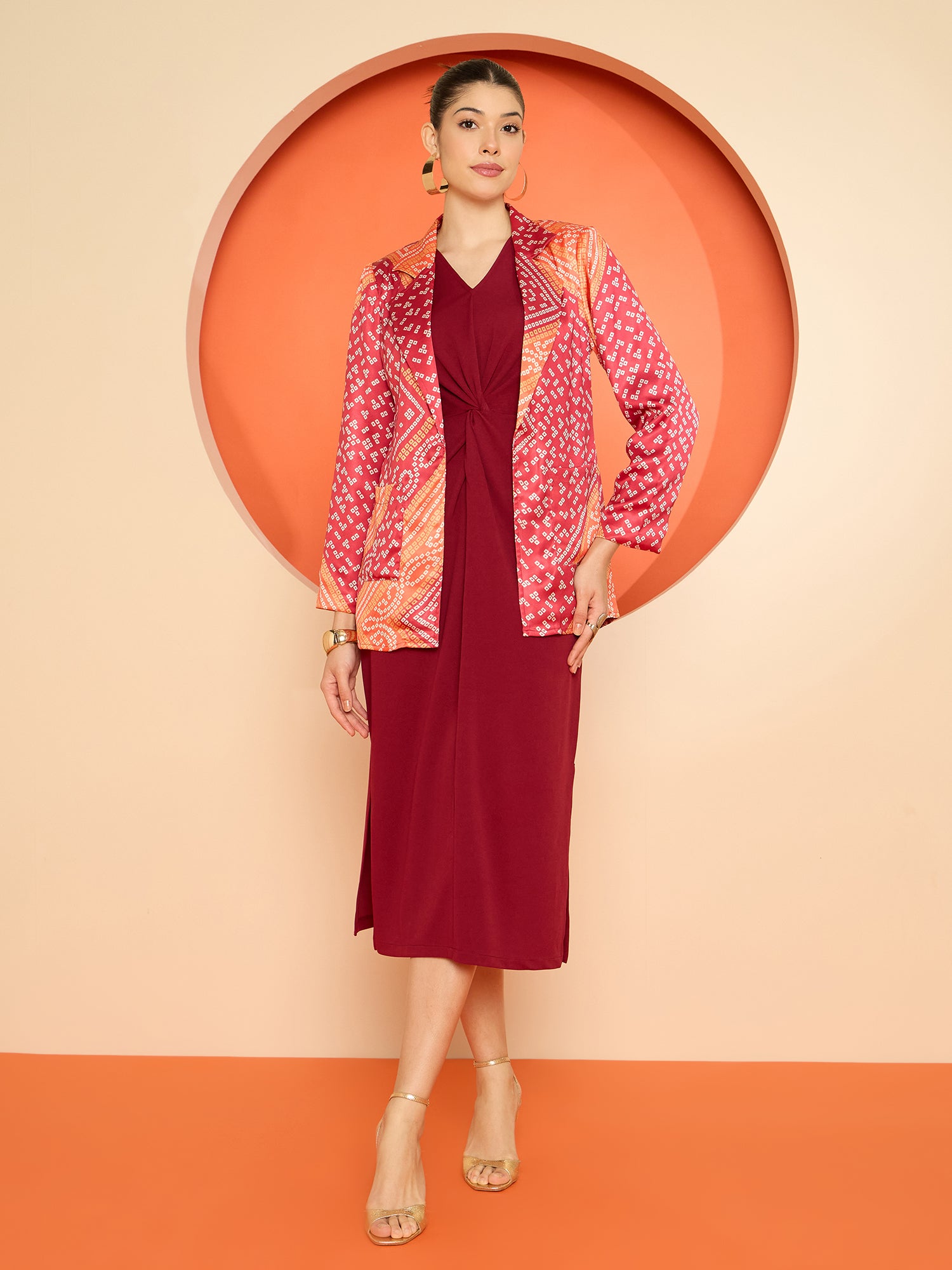 - Comes with a Pink & yellow bandhani printed blazer