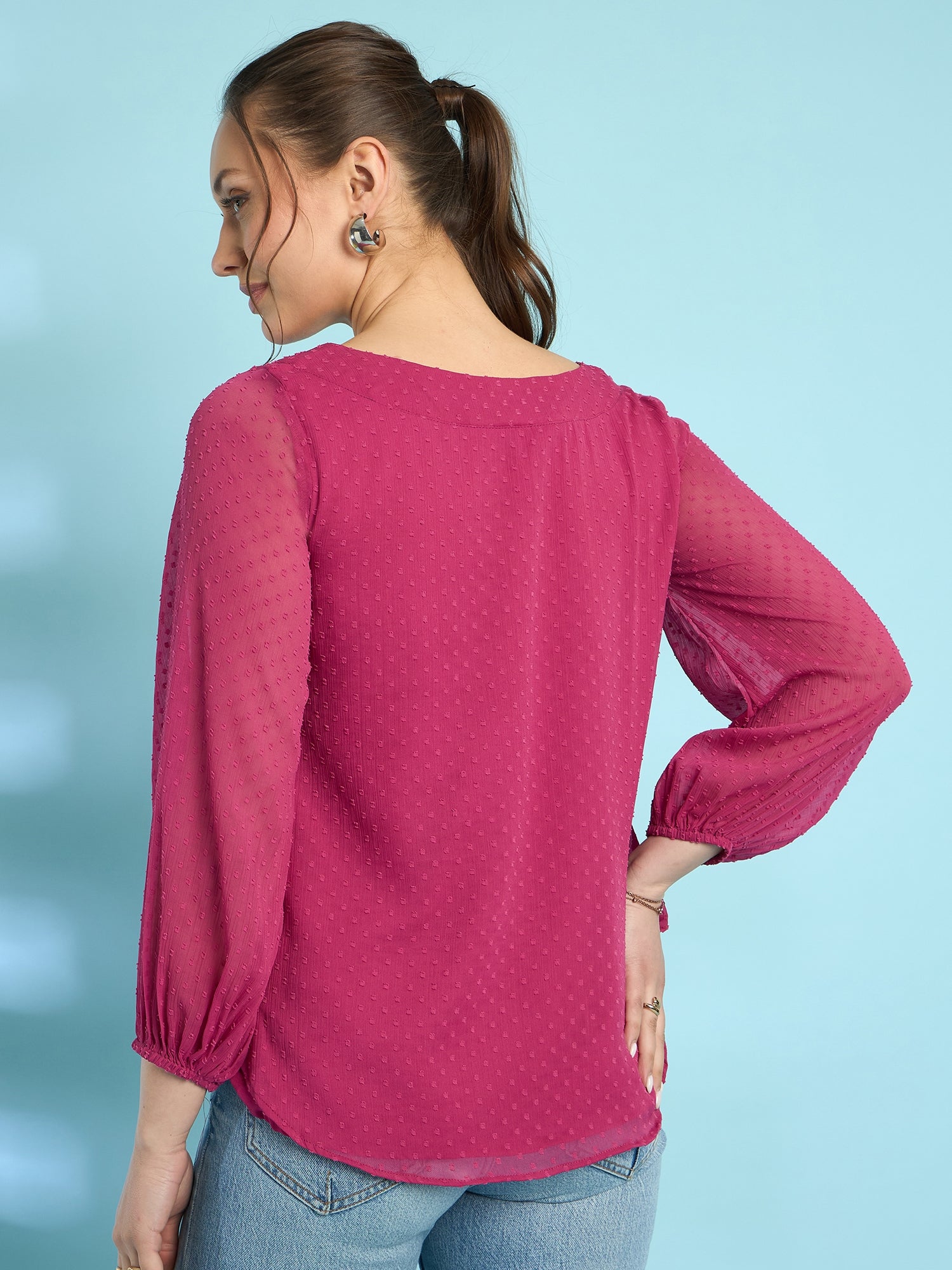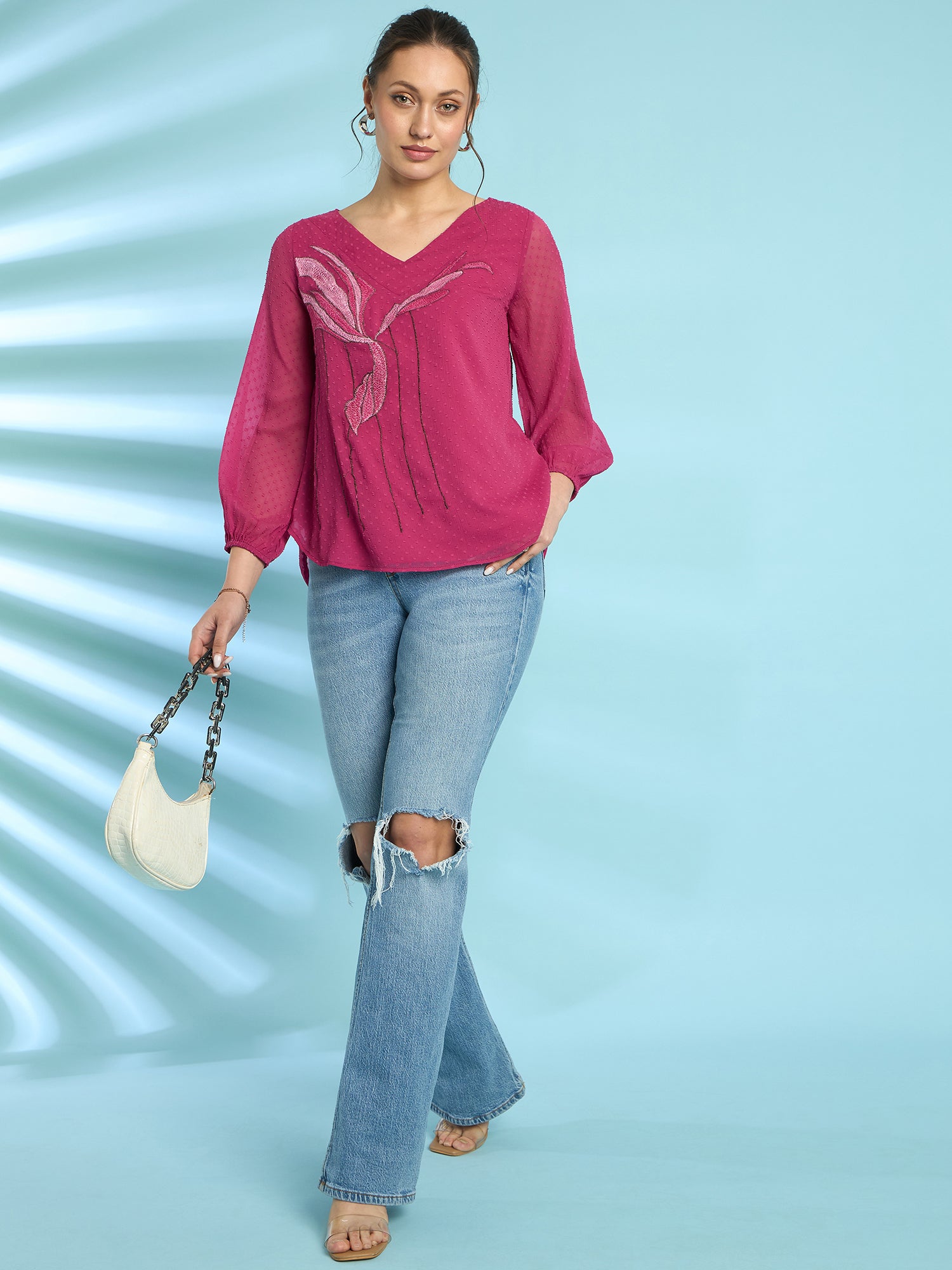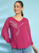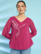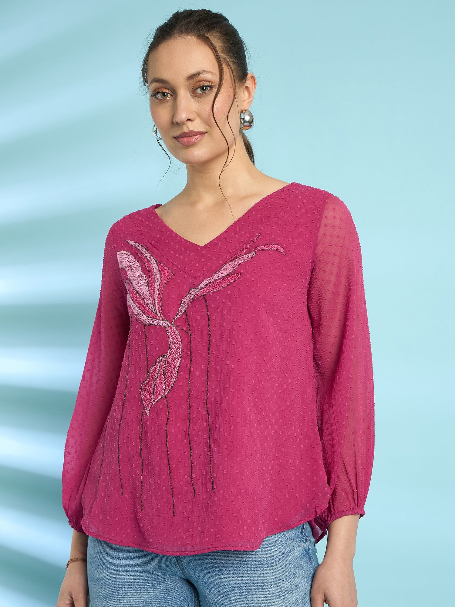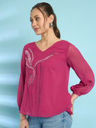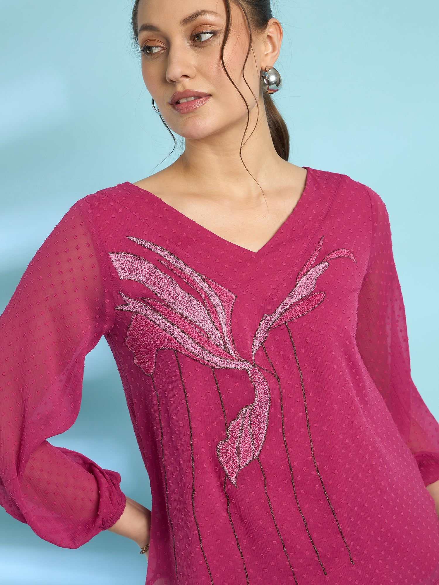 Antheaa Embroidered Chiffon Top