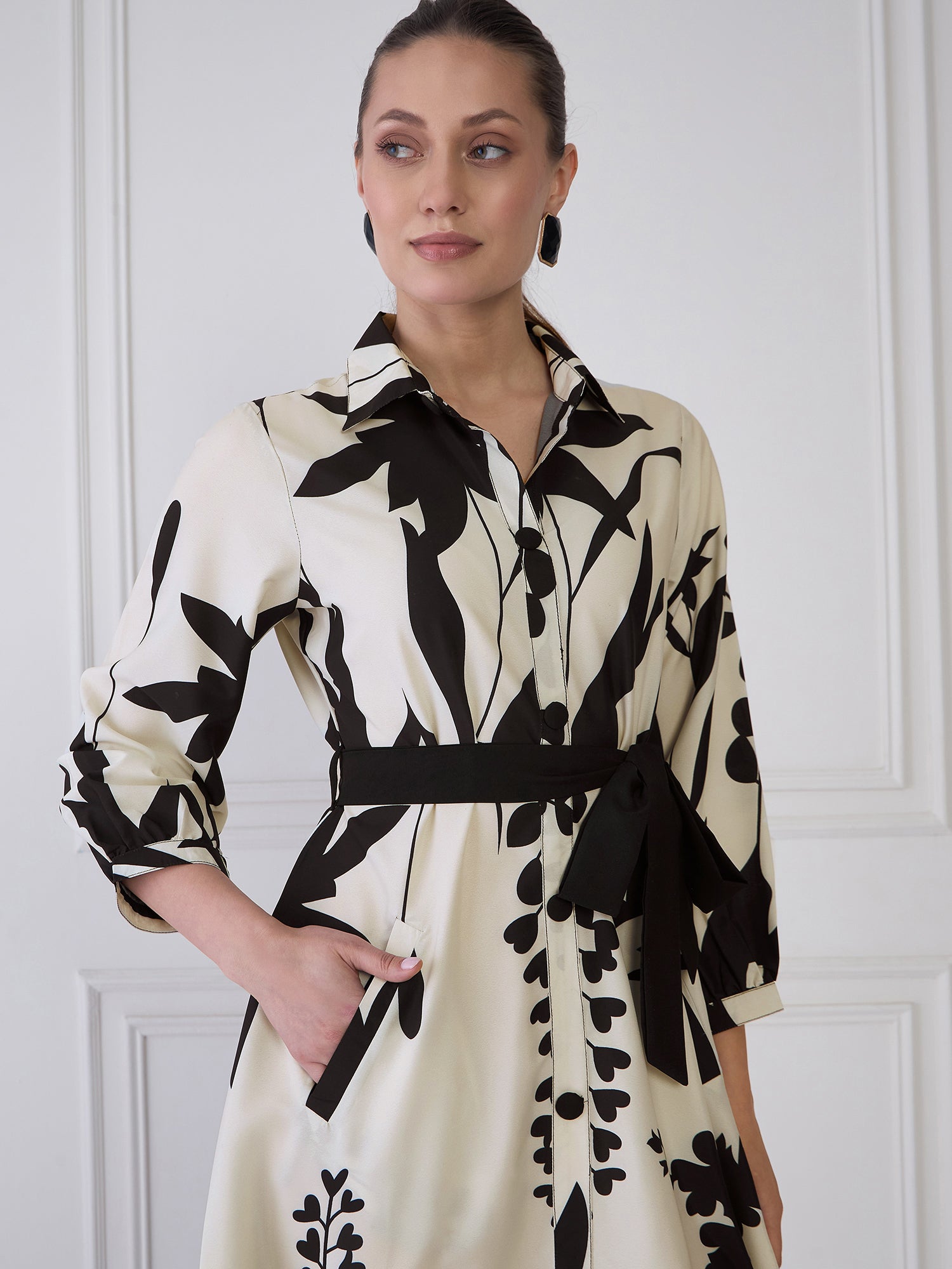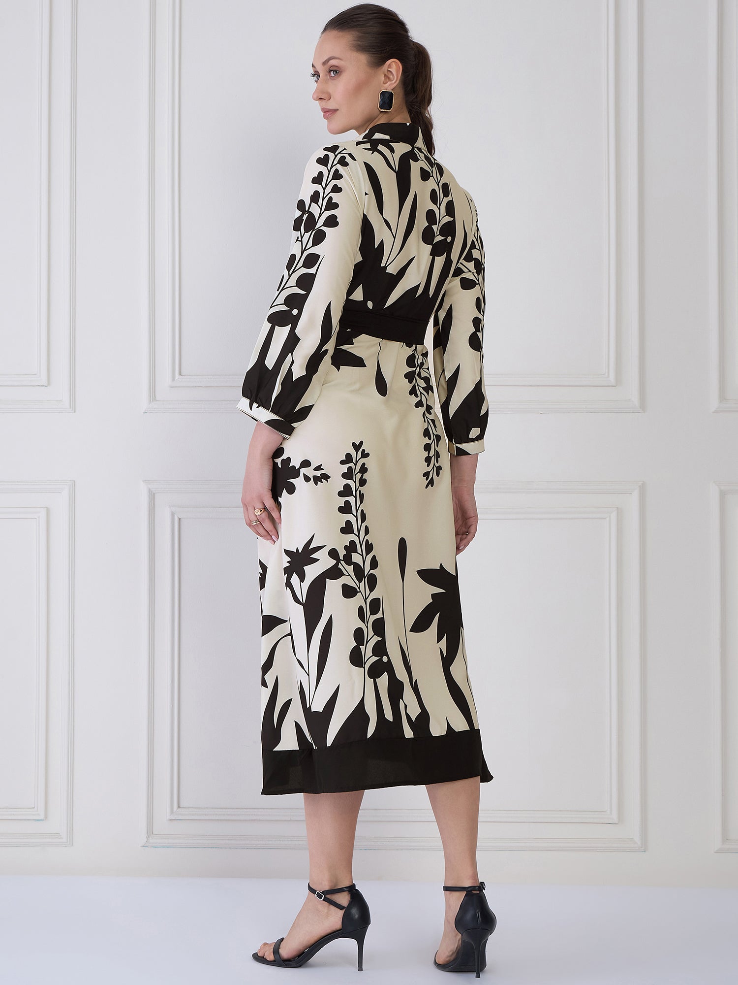 Antheaa Floral Print Shirt Collar A-Line Midi Dress